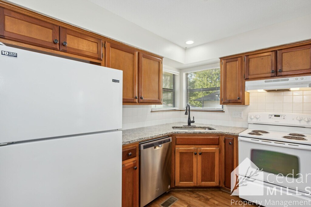 This is a very spacious 3 bedroom just West of Andover road. Upstairs, the living area has vaulted ceilings, a faux fireplace and patio doors leading tot he large, fenced yard. The kitchen features granite countertops and a nice layout offering ample counter and cabinet space. One bedroom and one bathroom are on the main floor. Downstairs a large basement with carpet, two additional bedrooms, second bath and living space. This is an affordable opportunity to be in Andover schools, don't wait! Absolutely no pets, no exceptions. Rent $1425 Deposit $1425 plus $150 move in fee