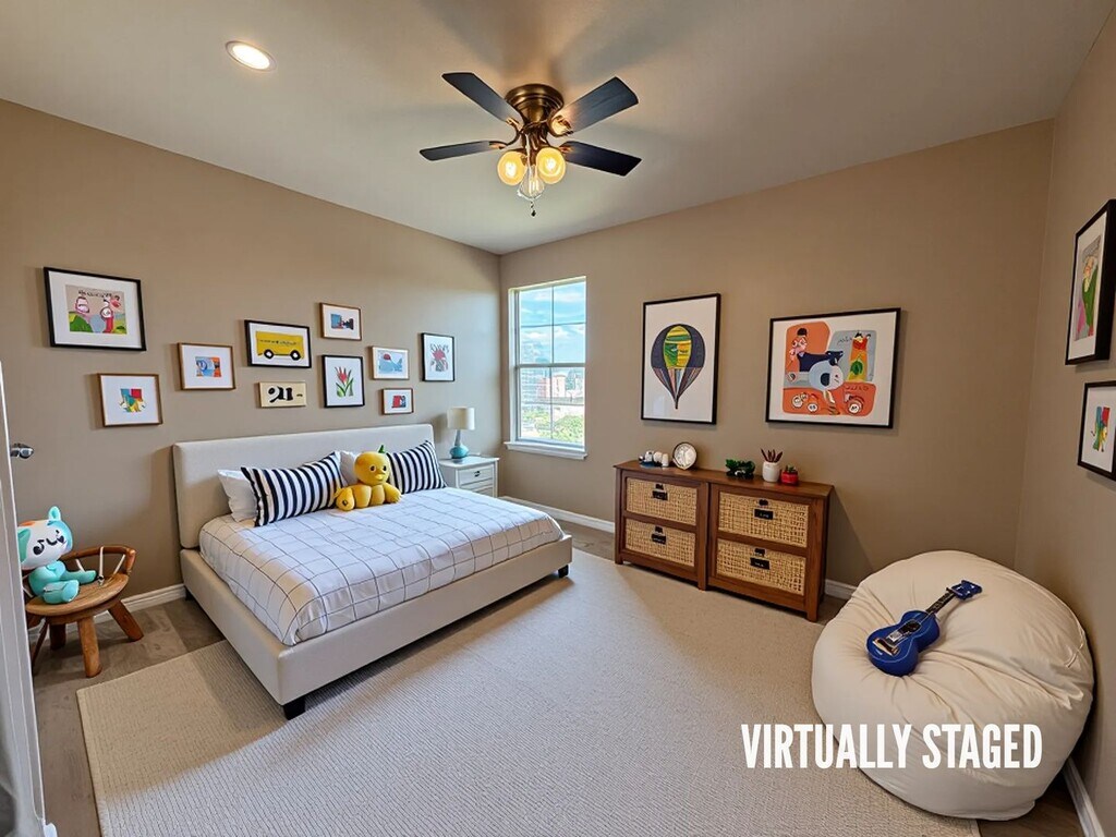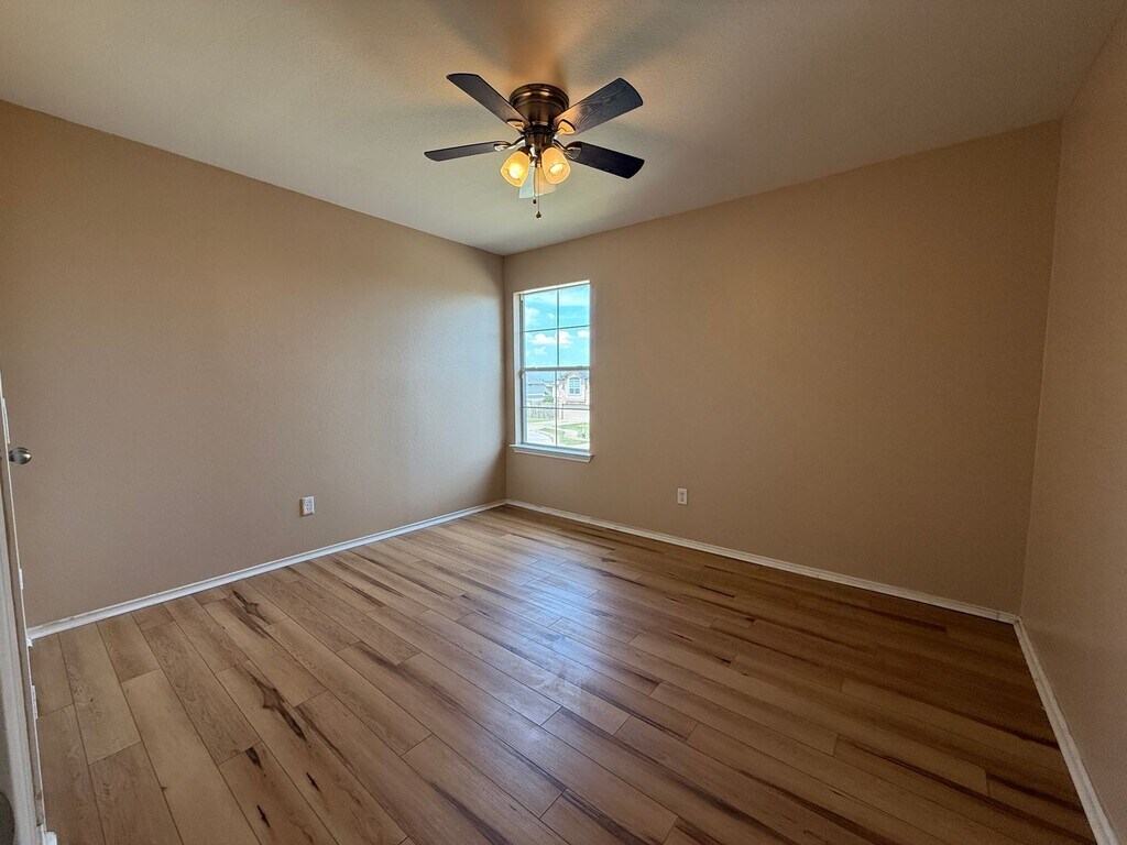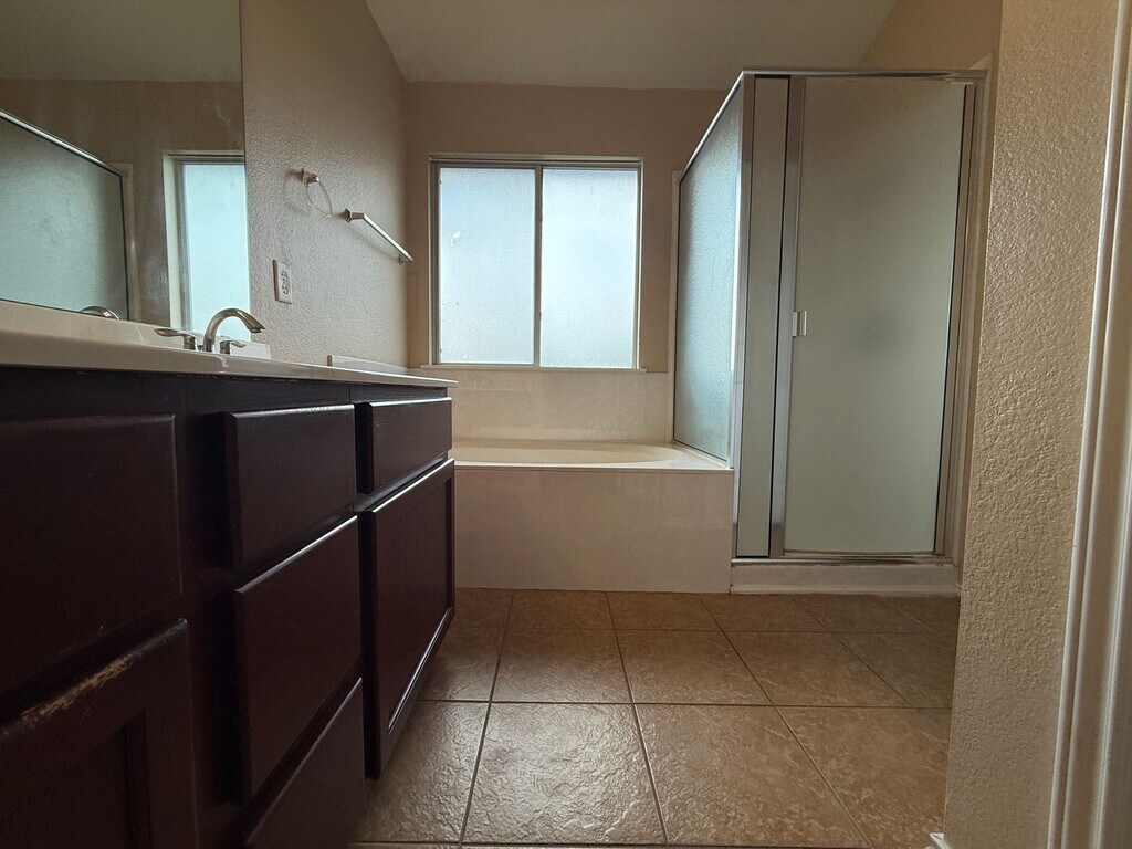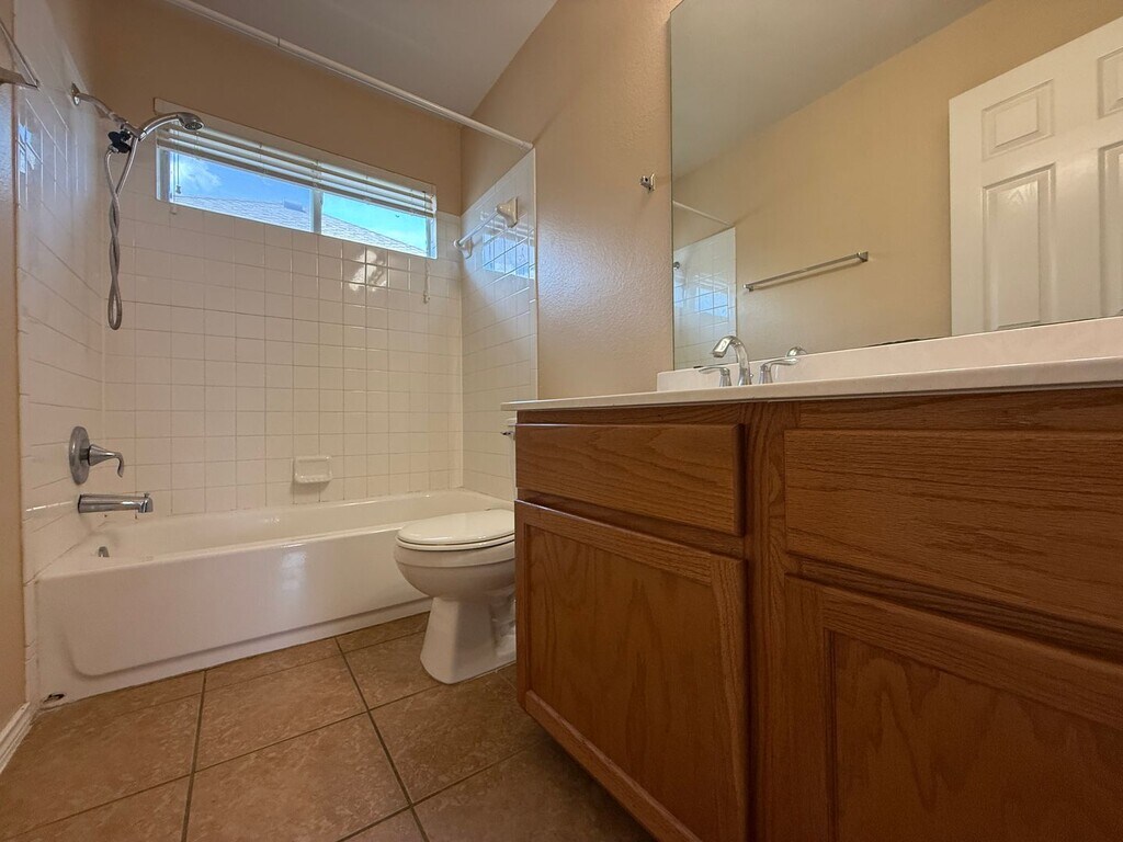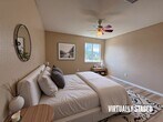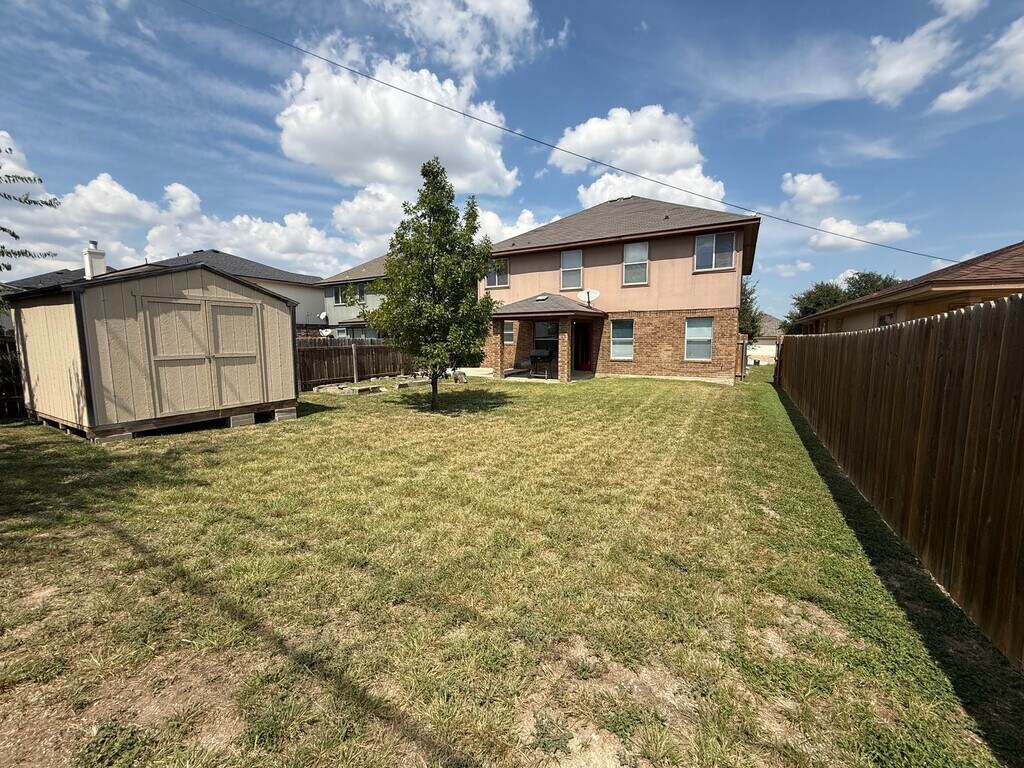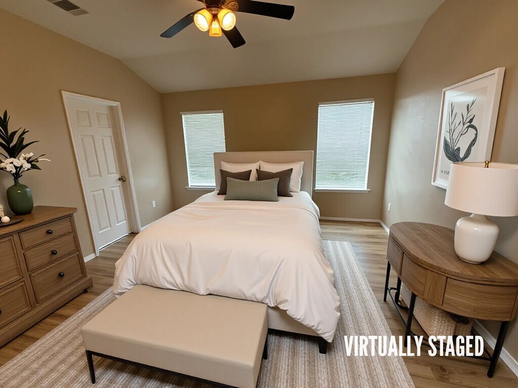 View 360 Virtual Tour: 4 bed 2.5 bath house with painted cabinets in the kitchen and granite countertops, stainless steel appliances, and a spacious living area. Features a walk-in pantry and laundry area, upstairs loft living space with covered balcony access, and a master bathroom with walk-in shower, deep garden tub, and double sink vanity. Enjoy the covered patio, spacious backyard with outside storage shed, and attached two-car garage. Pets of all sizes are welcome. Come by our office to view this property today. Disclaimer: The furnishings or enhancements shown are AI-generated and intended for inspiration only. They may not reflect the actual scale, condition, or current features of the property.