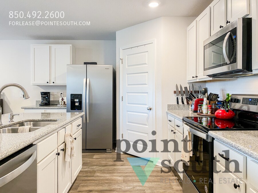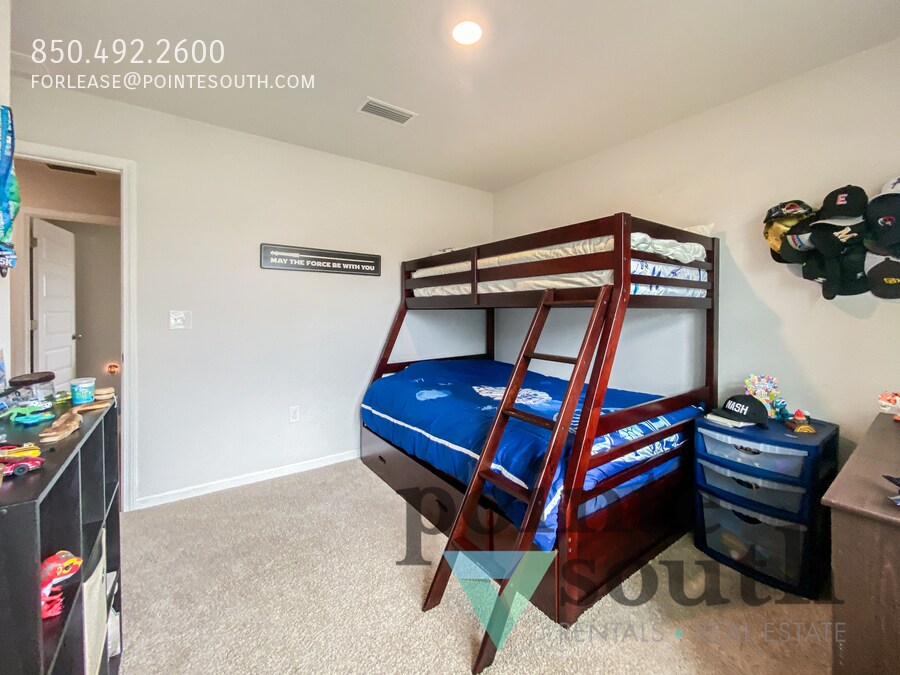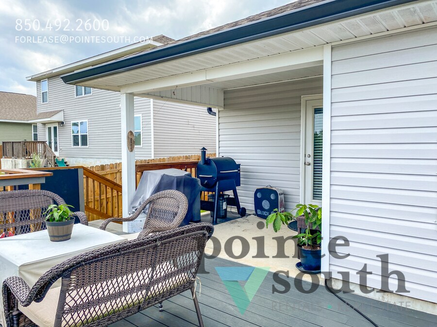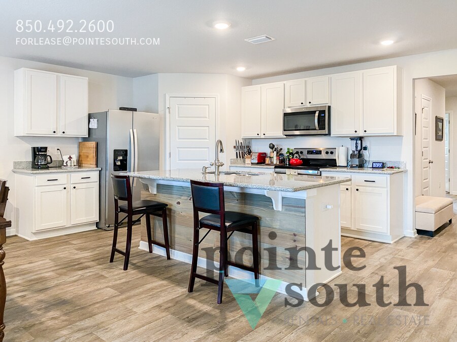 Spacious unfurnished 4BD/2BA rental home available now! This craftsman-style home comes equipped with luxury vinyl plank flooring throughout the main areas with carpet in the three bedrooms. The floor plan is open, with defined areas for the living area and dining areas. The kitchen has stainless steel appliances, white cabinets, granite countertops, and a large center island with plenty of cabinets and counter space. The large master suite features dual vanities, a stand-up shower, a large walk-in closet, and a separate water closet. You'll find the three guest suites in the front of the home- all a generous size. For your convenience, the full-size laundry room includes a washer and dryer. Outside you'll find a large deck that overlooks the fully fenced in backyard- the perfect place for entertaining. Galahad Trail is inside the Cambria subdivision in Milton, Florida. Located moments away from Avalon Boulevard and around Bennett Russell Elementary, this growing community is close to area restaurants and shopping. Slide does not come with the home. Tenant to pay all utilities. The property will be held off market up to 14 days with Property Holding Fee with approved app. Lease Prep Fee of $75 is due prior to move in. Renters insurance is required. Approved dogs require $400 pet fee per pet. Sorry, no cats.