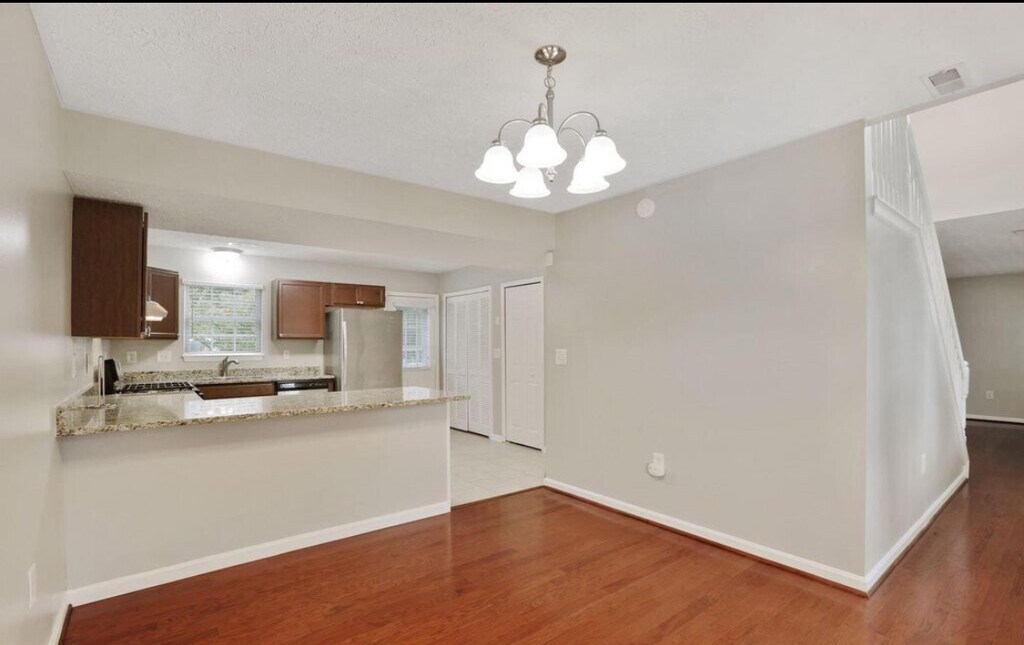 Welcome home to this beautifully maintained 3-bedroom, 2-bath home located in the desirable Dorchester community of Waldorf. Enjoy crisp fall days on the inviting front porch, or step inside to find gleaming hardwood floors throughout the main living areas. The updated kitchen boasts stainless steel appliances, granite countertops, ceramic tile flooring, and a large peninsula ideal for dining or entertaining. The main level offers a convenient bedroom and full bath, while the upper level includes two additional bedrooms and another full bath. The spacious, level backyard backs to a wooded conservation area offering privacy and the perfect space for outdoor gatherings. Tucked away on a quiet cul-de-sac, this home provides peace and comfort with easy access to St. Charles Town Center, schools, shopping, and Route 301 for an effortless commute. Military families are welcomed! Tenants pay all utilities and HOA and no smoking allowed.