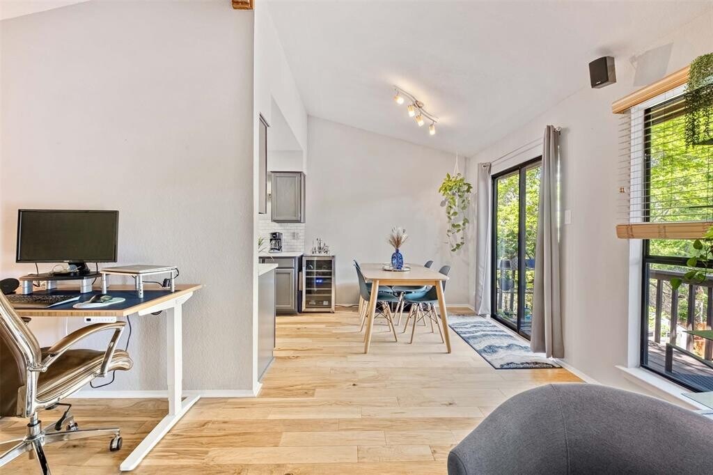 A BRENTWOOD Gem! This modern and updated one-bedroom condo is spacious yet cozy with an abundance of natural light while hidden in the trees for peace and privacy. A fantastic location in North Central Austin just blocks away from eateries, such as Bird Bird Biscuit & Citizens All Day, shops, and tucked away treasures that represent Austin’s true cultural vibe. This quiet, 8-unit complex features a very clean end unit with Google fiber available, a refrigerator, great closets and storage, no carpet, bluetooth surround sound, private balcony, on-site laundry just downstairs, plenty of shaded parking, and a gated common area for gathering. Rent includes water and trash. Recent improvements include updated kitchen lighting, new AC unit, new garbage disposal, new exterior wood siding, and a full landscape renovation. Convenient to bus routes and a quick city commute. Available for a January move-in, and easy to show and apply! Pets will be considered. Call/text listing agent for all showing appointments.