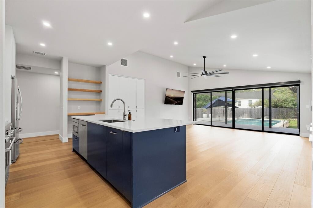 Welcome to 5604 Bull Creek Road! This stunning 3-bed, 2.5-bath single-family residence PLUS furnished 1/1 garage apartment is nestled in the popular Shoalmont/Allandale neighborhood of Austin. Fully remodeled in 2019, this home boasts fresh and contemporary finishes and a finish out that will definitely impress. Step inside to an open-concept living space filled with natural light, perfect for both entertaining & everyday living. The gourmet kitchen which opens to the family room & dining room features modern cabinetry, open shelving, sleek Quartz countertops, a large kitchen island with bar seating & state-of-the-art stainless steel appliances, making it perfect for entertaining. The spacious master suite upstairs offers a serene retreat with a luxurious en-suite bathroom, complete with dual vanities, a walk-in shower, soaking tub, spacious walk-in closet & elegant fixtures. Don’t miss the laundry room downstairs with plenty of counter space, sink, plenty of storage + access to the back deck and sparkling pool! Enjoy sunny Texas days by the pool (complete with solar heater to extend the swim season!) The covered patio has an outdoor kitchen and offers plenty of space for outdoor dining. There is also a gated entrance to covered parking, the detached two-car garage and ADU which provides additional security. This vibrant neighborhood is close to local shops, dining, parks, & schools. Steps away from Shoal Creek Greenbelt, 2 min from HEB, Taco Flats, Voodoo Donuts & 5 min from Torchy’s and Pinthouse Pizza. Access Mopac in under 5 min. Don’t miss the opportunity to lease this exquisite home in one of Central Austin’s most desirable neighborhoods. Schedule your private showing today & experience a perfect blend of modern luxury and comfortable living! *Apply at * Landlords retain use of storage closest in the garage & shed. Personal items in closets in the ADU will be removed prior to tenant move in. Landlords cover landscaping & pool maintenance expenses. MLS ID 7981238