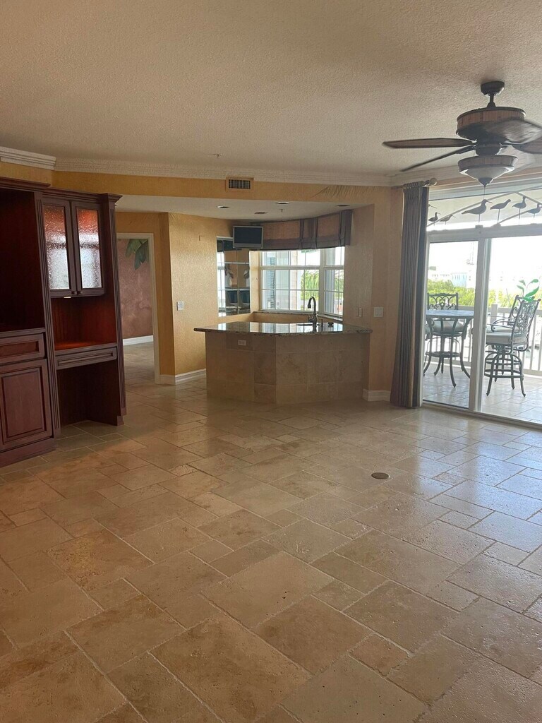 A breathtaking, waterfront penthouse condominium with spectacular views of the Gulf & marina on the gorgeous Sunset Marina peninsula. Overlooking the pool, this large, open, corner unit features two lanais with 300' of entertaining space', master suite, travertine floors, granite/maple kitchen, roll down shade shutters, custom tropical motif hand painted mural walls, wet bar with refrigerator, onyx sinks in master bath, built-ins for TV/sound system and garage parking. The building is within Sunset Marina master planned gated community with elevator, storage, garage/guest parking, heated waterfront pool and clubhouse. Boat slips are available for world-class fishing and fabulous FL Keys sandbars minutes away in the Gulf or Ocean. Key West Golf Course is across the street. This is Key West resort living at it's finest! For applicant, Credit/background check, employment OR income source verification. Utilities not included. Non-smokers please. MLS ID 619275
