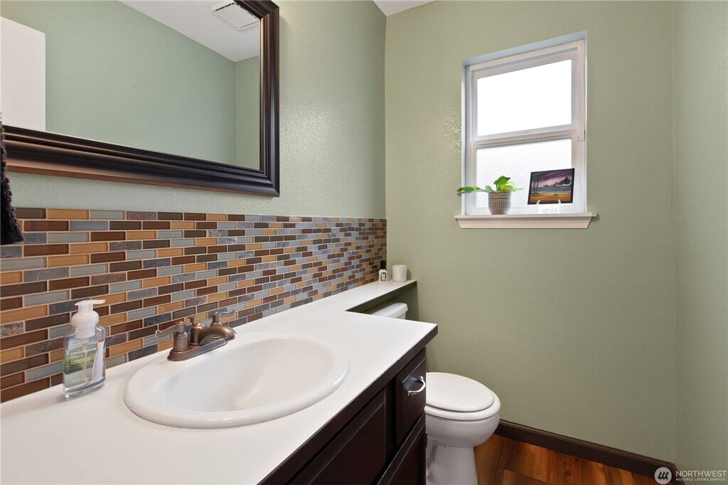This well-built home offers 3 bedrooms, 2.5 bathrooms & an open & lofty living area with updated kitchen & stainless steel appliances! The spacious primary bedroom features an en-suite bathroom & walk-in closet! So many updates thruout - bathrooms/kitchen/storage in garage. You'll truly feel the increased privacy w/no direct homes in front or behind this home as well as a quiet street. This home will make you feel cozy and warm! Entertain guests or simply relax in your secluded backyard which backs up to the current greenbelt complete with a custom pergola and swing, a perfect area for your pets, guests, or? Walking distance to Wonder wood Park, Rainier Vista Park & local schools. HOA covers front lawn & Inground sprinklers keep it green!