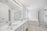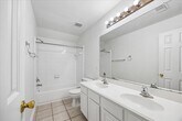 Welcome home to this spacious 4-bedroom,2.5-bath property in the desirable Villages of Langham Creek. The first-floor primary suite offers a relaxing retreat with a jetted soaking tub,separate shower,double sinks,and a large walk-in closet. Upstairs features three secondary bedrooms,a full bath with tub/shower combo,and a versatile gameroom perfect for entertaining,work,or play. The interior has been recently painted,including the garage,giving the home a fresh feel. Enjoy the inviting front porch and a nice backyard with space for a patio table or grill—great for outdoor gatherings. Carpet in all bedrooms. Conveniently located just minutes from shopping,dining,and outdoor recreation at Terry Hershey Park and Bear Creek Park. MLS# 87974129