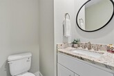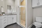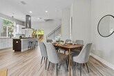 Stunning contemporary home nestled in the eclectic East Austin scene. This home serves as your gateway to all things Austin, positioned just a stone’s throw from Boggy Creek Greenbelt and only minutes away from East Austin's vibrant nightlife, trendy bars, eateries, breweries, coffee shops, and more. The home itself showcases a spacious layout with a bright and airy main level dedicated to communal spaces, while all bedrooms are thoughtfully positioned upstairs for enhanced privacy. The main level is surrounded by expansive windows and sliding glass doors, inviting natural light in from every direction to create a warm and inviting atmosphere. The open-concept design features a breathtaking chefs kitchen at its heart, highlighted by a modern range hood over the island. This island serves as the perfect gathering spot for entertaining, facilitating connections with guests while cooking and serving. Throughout the home, you'll find warm, neutral wood-look tile flooring, which eliminates carpet for a low-maintenance and sleek design. High-end design elements are prominent throughout the residence, including granite countertops, pristine white cabinetry, recessed lighting, oversized windows, modern ceiling fans, framed mirrors, and an impressive contemporary staircase. The outdoor area features a noteworthy xeriscape design, ensuring minimal maintenance while fostering a serene atmosphere perfect for relaxing or entertaining under the stars. This exceptional home offers the best of both worlds with its incredible location just 10 minutes from the vibrant heart of downtown Austin, yet walkable to tranquil nature preserve trails.