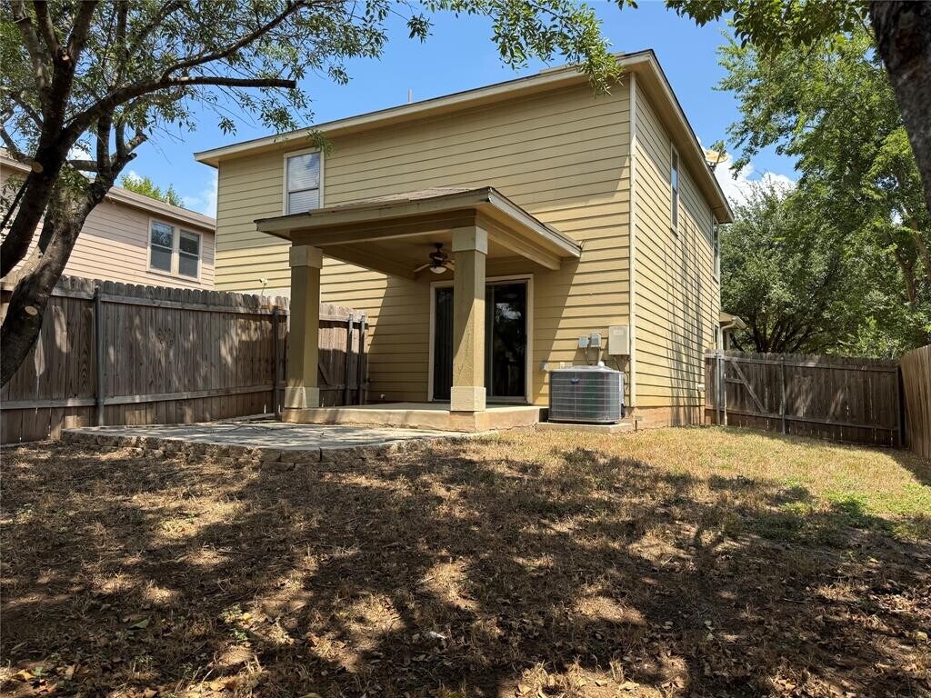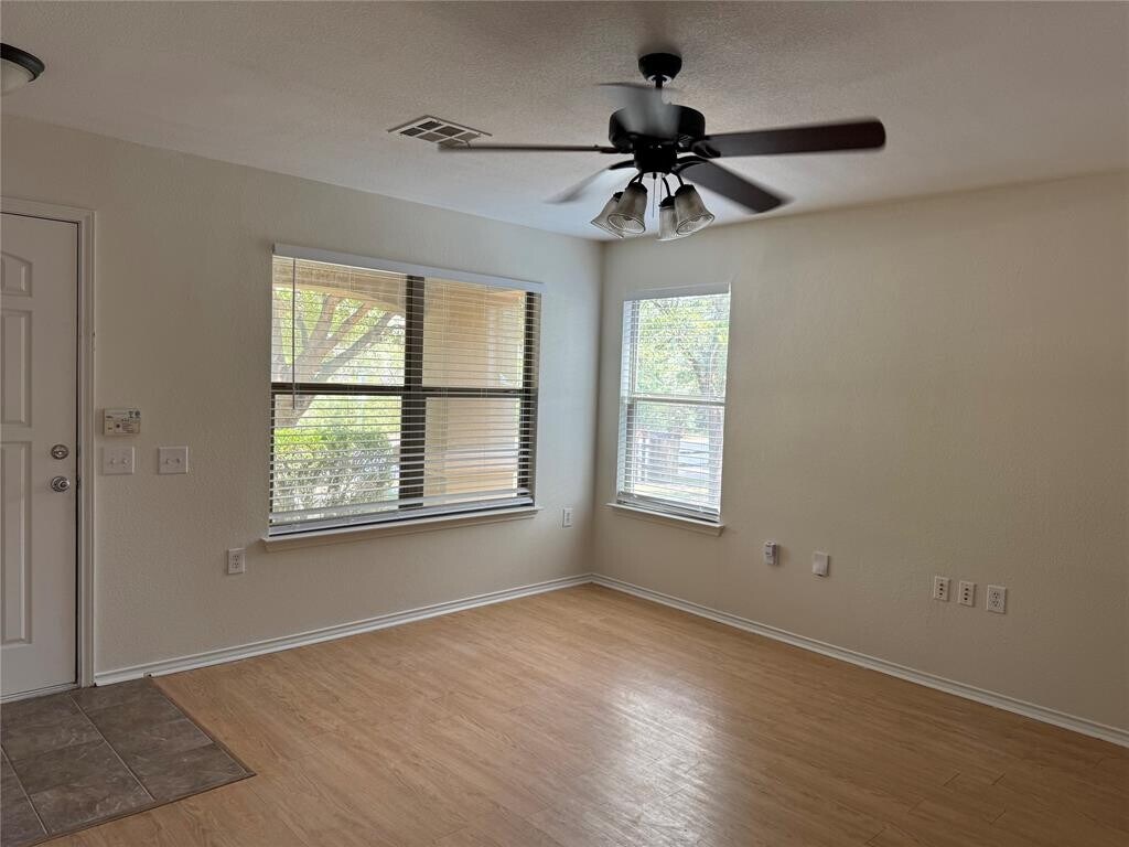 Great location, close to major highways, shopping and schools. Front of home faces green belt. Granite countertops, wood floors and ceiling fans throughout. Recent paint, blinds, fencing and refrigerator. Cozy space, open and airy.