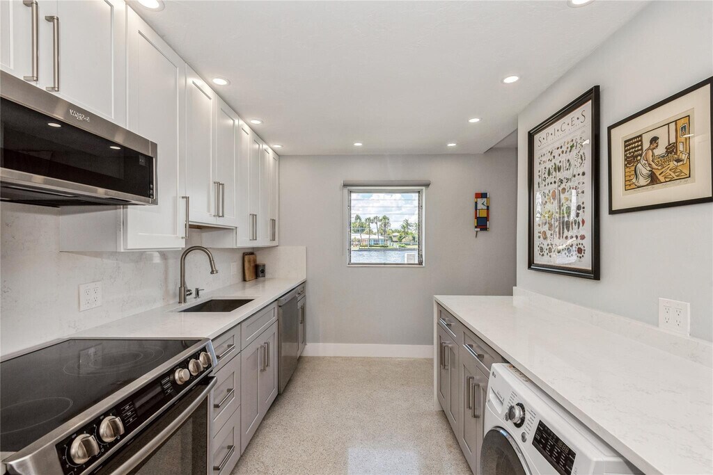 Direct Intracoastal views. A boat parade every day from this fully furnished gem in the heart of Fort Lauderdale Beach only a few blocks to the ocean. Updated with terrazzo floors throughout and in-unit washer & dryer. Live year round in a boutique Mid-Century Modern complex with only 10 units,this is a quiet oasis. Parking allows for 2 cars to be parked tandem. A great neighborhood with Breakers Avenue only 3 blocks away and minutes to Las Olas. MLS ID F10542233