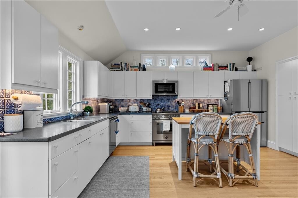 This expansive five-bedroom,five-and-a-half-bathroom,waterfront property on Indian Avenue invites you to experience the epitome of comfort,breathtaking views,and outdoor adventure. The first level boasts a main kitchen,formal dining room,sitting room,TV room,full bath with a shower,laundry facilities,and a convenient half bath. The smaller breakfast kitchen and spacious living room open up to a bluestone patio with enchanting water views through French doors. The second floor hosts the king-size primary bedroom,complete with an ensuite bathroom and a balcony that overlooks the picturesque Sakonnet River. The second bedroom features a king-size bed with an attached full bath and additional laundry. The third and fourth bedrooms are queen-sized with a shared full bathroom,while the fifth bedroom offers two twin beds and proximity to a room with a day bed and crib,and an additional full bathroom with a clawfoot tub. Situated on nearly one acre of land,the property provides direct beach access for paddle boarding and kayaking. This property offers a perfect blend of comfort,stunning views,and outdoor activities,making it an ideal choice for a memorable summer getaway.