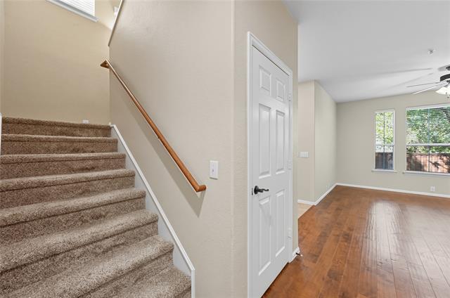 IMMACULATE END-UNIT TOWNHOME IN A PRIME LOCATION JUST A FEW BLOCKS FROM THE VIBRANTLY REVITALIZED OLD TOWN LEWISVILLE! You will feel right at home in this charming 2-story featuring wood flooring, vaulted ceilings, neutral colors, ample storage, fire sprinklers and an oversized garage ideal for XL vehicles. Prepare meals in the spacious kitchen boasting a refrigerator, pantry and tons of counter space, or end your day in the large primary suite including a dual sink vanity, linen closet and a walk-in closet. Enjoy a fantastic setting on a quiet, tree-lined street within walking distance of Old Town Lewisville’s lively restaurants, boutiques and train station.