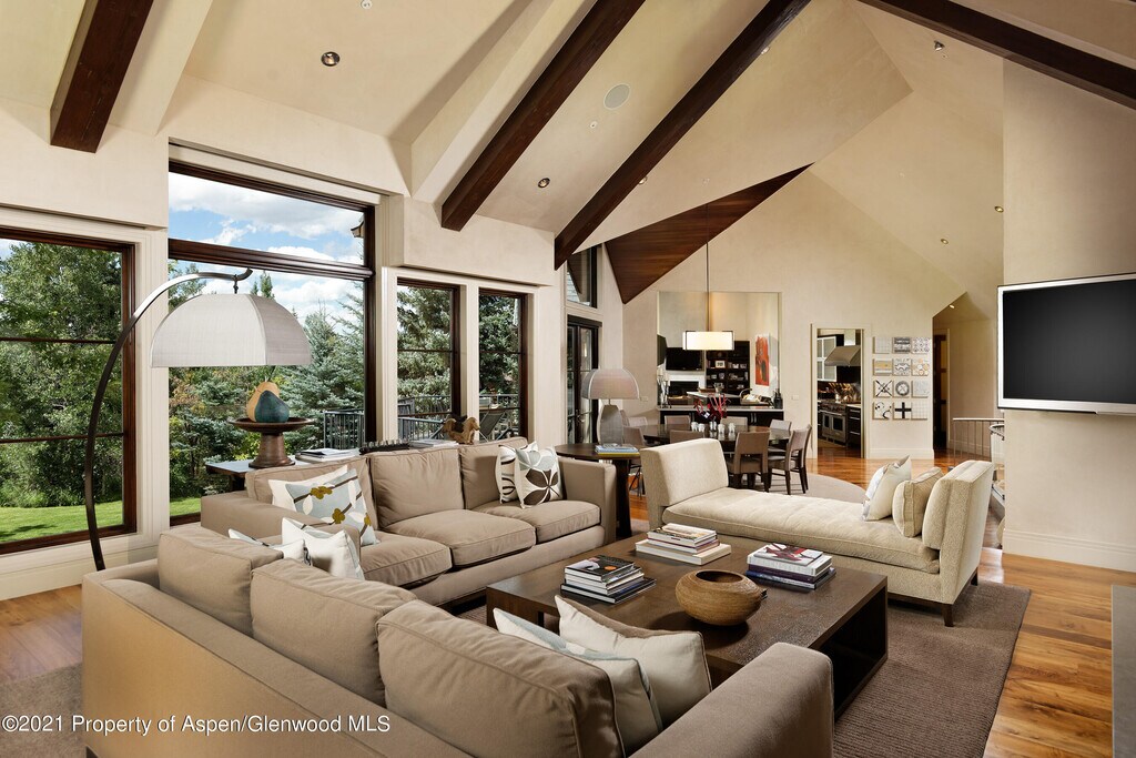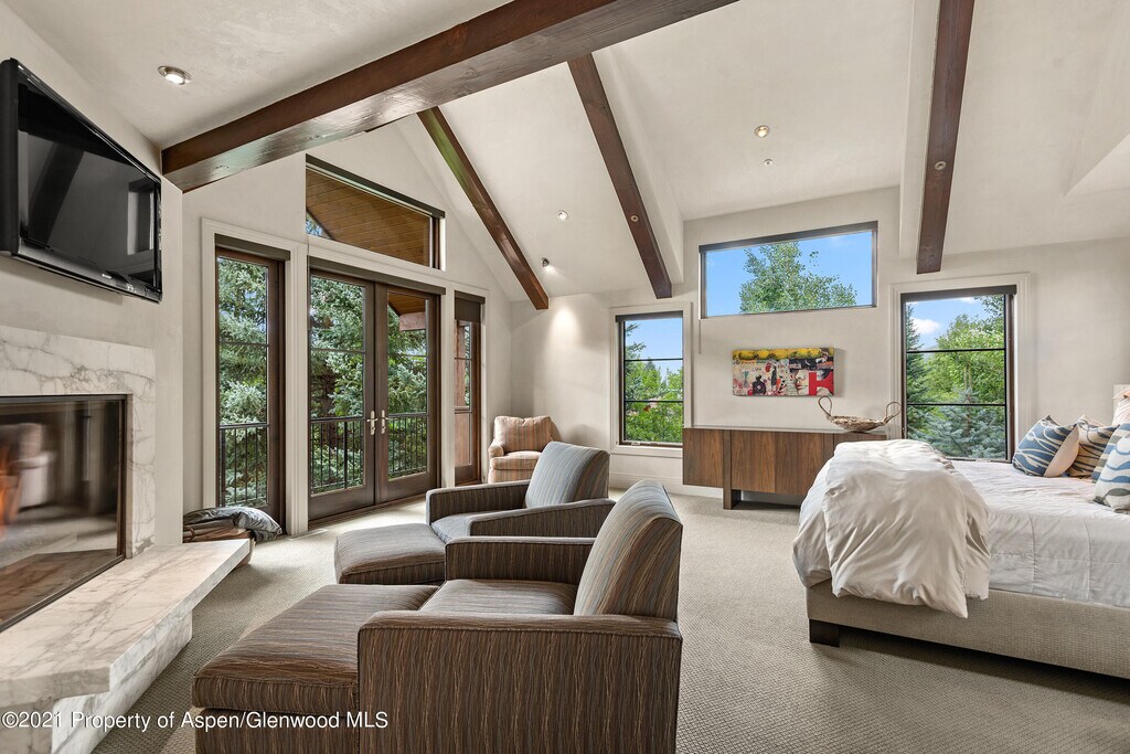 This incredible 5 bedroom/8 bathroom home is the perfect summer retreat for your family. Just across the bridge from the Aspen Core,with easy access to the bike path that will have you in town in minutes! Enjoy the beautiful views of the mountains from the large picture windows and the spacious patios. Ample yard space,a water feature,and a jacuzzi make for spectacular outdoor entertaining and living. The well appointed kitchen is ideal for a large family,or private chef catering a dinner. The primary is upstairs on the main level. The remaining 5 bedrooms are on the garden level. The guest master has French doors that open out to the garden. The basement has a large media room,a separate game room and a gym. Enjoy the quiet of the mountains while still maintaining proximity to town