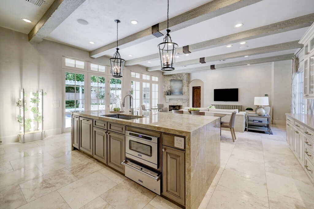 Mesmerizing and meticulously maintained French,custom home boasts high-end custom finishes,open chef's kitchen & living,and designer details by Margie Slovack of Slovack-Bass designs throughout. Viking and Sub Zero appliances,outdoor oasis & entertaining spaces,and home-theater room that leaves you speechless. Kitchen has ample,waterfall edge working island,backyard features a beautiful,covered loggia with complete summer kitchen,pool & spa,impeccable landscaping,putting green,and stone wood fired pizza oven. Primary suite indulges with spacious bedroom and wet bar. Secondary bedrooms have all en-suite bathroom and additional 3rd floor bedroom that is great for guests. Sprawling game room and additional features include oversized 3-car garage,generator,elevator,mosquito misting system,exercise room,and boundless other amenities. Beautifully appointed and fully furnished. Contact listing agent with any questions. MLS# 76827731