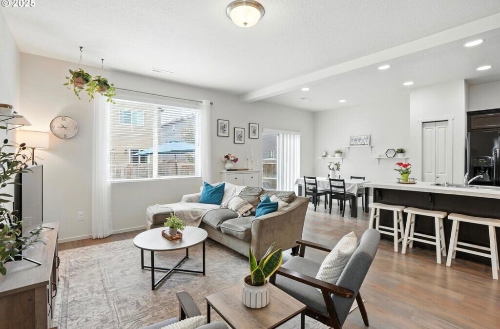 Home Sweet Home! Welcome to this bright and spacious 2-story beauty offering 4 bedrooms, 2.5 baths, and plenty of room to live, work, and play. The open-concept main level features a flexible 4th bedroom that can easily serve as a home office or play space. You'll love the stylish kitchen with a center island, pantry, and seamless flow into the dining and living areas perfect for entertaining or everyday life. Upstairs, a versatile loft area provides additional living space. The private primary suite includes an ensuite bath and generous closet space. Two additional bedrooms and a full bath complete the second floor. Enjoy a fully fenced backyard with a patio great for relaxing, grilling, or letting pets and kids play. With its smart layout, abundant natural light, and functional spaces, this home offers both comfort and versatility.