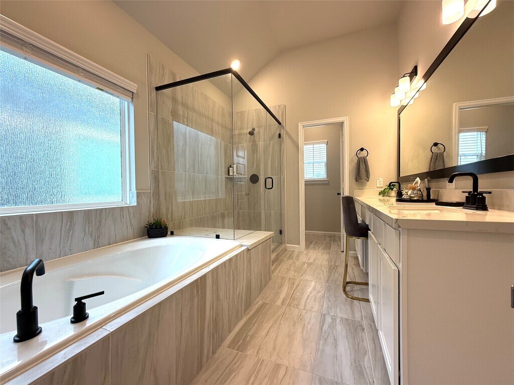 Nestled into the gated community of Highland Grove,this nearly new home is full of thoughtfully designed features! Enter via the front staircase to discover a spacious living,dining and kitchen area where natural light abounds. The kitchen features ss appliances,ample quartz countertop space,a breakfast bar,a separate island and is anchored by a built-in stove and cooktop. The living and dining spaces are equally perfect for hosting or enjoying a quiet evening at home. Upstairs you have a spacious and relaxing primary suite complete with high ceilings,double sinks,vanity,soaking tub,gorgeous tiled shower and large walk-in closet. Downstairs you have a bonus living area and full bedroom and bathroom near the garage and backyard. The backyard is complemented by a brand new deck,includes a storage shed and boasts no back neighbors. Washer,dryer,fridge and EV charger are included. Enjoy easy access to 610,290 and 45 as well as being minutes from TC Jester Park and The Heights! MLS# 88988687