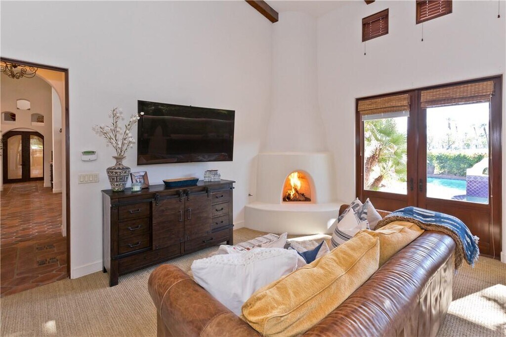 Rates VARY BY MONTH! THE PROPERTY HAS BEEN PROFESSIONALLY INTERIOR DESIGNED - NEW INTERIOR PHOTOS SOON! Imagine waking up to breathtaking mountain vistas, the emerald expanse of a world-class golf course unfolding before you, and the sun warming your skin through expansive glass doors. This Spanish-style masterpiece, nestled within one of the finest Players Golf Clubs in the country, isn't just a home- it's an invitation to a life of tranquility and unparalleled luxury. Step into a soaring cathedral ceiling crowned with rustic wood beams, where the line between indoors and outdoors gracefully blurs. A wall of disappearing glass doors invites the desert in, painting your living space with the vibrant hues of the fairway and distant mountains. Gather around the oversized island in the chef's kitchen, Viking appliances glinting under the pendant lights, as you share laughter and stories with loved ones. The raised dining room, warmed by a crackling fireplace, promises elegant evenings under a starry sky. Your private sanctuary awaits in the oversized primary suite. Wood beams add warmth, while dual doors open to reveal a breathtaking panorama of the pool, spa, golf course, and mountains. Start your day invigorated by this vista, the desert air whispering through palm trees. This home caters to every desire. An exercise room keeps you energized, while a private guest ensuite with its patio offers a peaceful retreat for visitors. The casita, accessible from the courtyard, beckons with a fireplace, kitchenette, and family room the perfect haven for creating lasting memories with loved ones. Outside, your desert oasis unfolds. Bask in the sun on the covered patio, the scent of blooming bougainvillea filling the air. Take a refreshing dip in the private pool, warmed by the desert sun, or melt away stress in the soothing embrace of the spa under a canopy of stars. This is more than just a home- it's an experience. It's the thrill of teeing off on a championship course, the serenity of watching desert sunsets paint the sky with fiery hues, and the joy of sharing laughter and connection with loved ones in your private paradise. NOTE: (Rates will vary by month. The price listed is for the lowest month of the year.)