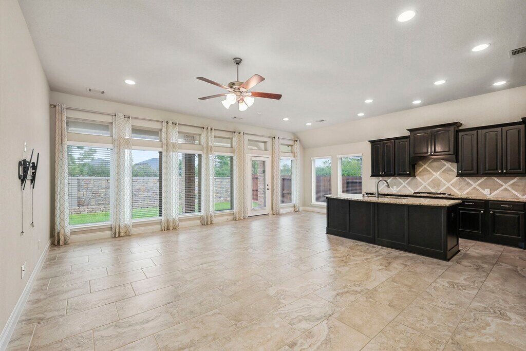 One-Story,4 bedrooms & 3 full baths. The Guest Room has its own private bath and is tucked away from the other secondary bedrooms. Open floor plan makes the kitchen/family rooms the focal point for gatherings. Beautiful architecture throughout features high ceilings,large windows,ceramic tile floors in the main areas,and plush carpet in the bedrooms. Office features French doors with beveled glass. The gourmet kitchen features Stainless Steel appliances,granite countertops,large island,breakfast bar,and recessed lighting. The huge primary retreat has double sinks,a deep soaking tub,a separate shower,and a large walk-in closet. The extended covered patio is perfect for outdoor entertaining. Amenities include a resort-style pool,workout gym,water park,tennis courts,dog parks,more than 60 miles of hike/bike trails and so much more! Zoned to LAMAR CISD! MLS# 43964970