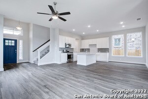Gorgeous home! 4 bedrooms, 2 1/2 bath, bright open floor plan. Kitchen features gas cooking, stainless steel appliances, custom cabinets, quartz countertops. Downstairs master bedroom features spa like bathroom with huge walk in closet. Upstairs you will find family room, and 3 large bedrooms. Walking distance to community pool and park. Easy access to Loop 1604 and Ih 35, plenty of shopping nearby. Top rated NEISD Schools.