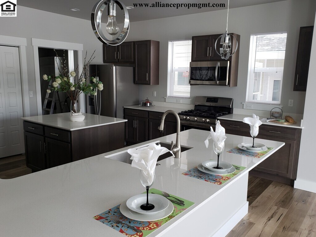 Enjoy life in a nice 4-bedroom 2.5 bath air-conditioned house located in The Lakes at Valley West. Walking distance to Gallatin High School. Trail system and a community playground next to two large lakes. Washer/dryer hook ups, dishwasher, and an attached two car garage. Over 2300 square feet of living area on two stories. Bedrooms with balcony and walk in closets. Large master bathroom. Fireplace in expansive living area for entertaining. Kitchen boasts a 5-burner gas stove. 1 Pet considered, no smoking. ***Please Do not disturb Tenants!!*** Equal Opportunity Housing **Showings by appointment only, call Alliance Property Management **