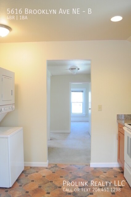 5616 Brooklyn Ave NE, Apt B, Seattle, WA 98105 Fall 2026 prelease: Available 9/10! Please email to schedule tour or for more pictures/information! LAST of three units in well-maintained building, available for fall prelease! Sunny Apt B on upper floor includes 4BR, 1BA, and Kitchen, with newer floors and interior paint (2021)! In-unit Washer/Dryer. Ideally located in Walk score-rated “Walker's Paradise” (95 out of 100): Close to UW campus, U Village, plus local shopping, restaurants, coffee shops, and access to public transit! * Listed rental rate includes charges for the reasonable usage of standard water/sewer/garbage services by four adult occupants only; Tenant is responsible all other in-unit utilities (electric, Internet, etc.) * Apt B (2nd Floor), $3,160.00/mo: 4BR, 1BA, Kitchen, Deck, 2 FREE uncovered Parking Spaces * See more pictures: * The information above has been given to us by the Owner or sources that we deem reliable. We have no reason to doubt its accuracy, but we do not guarantee it. Prospective tenants should carefully verify all information contained above * Address: 5616 Brooklyn Ave NE, Apt B, Seattle, WA 98105 * Available 9/10 * No Smokers, No Pets * Terms: Minimum 12 months; NO summer-only, short-term, or month-to-month leases. 1st Month's Rent and Last Month's Rent due at lease-signing; refundable Security Deposit equaling half of one month's rent due at start of lease * Satisfactory credit check, background check (where applicable), and rental references required for all applicants and expected co-occupants aged 18 and over; non-refundable application fee (as charged by screening agency) is $45.00 + tax per applicant * No deposits accepted until application is processed and approved * Leased by Prolink Property Management, LLC, 14670 NE 8th St, Ste 168, Bellevue, WA * Equal Opportunity Housing: We are pledged to the letter and spirit of U.S. policy for the achievement of equal housing opportunity throughout the Nation. We encourage and support an affirmative advertising and marketing program in which there are no barriers to obtaining housing because of race, color, religion, sex, handicap, familial status, or national origin.