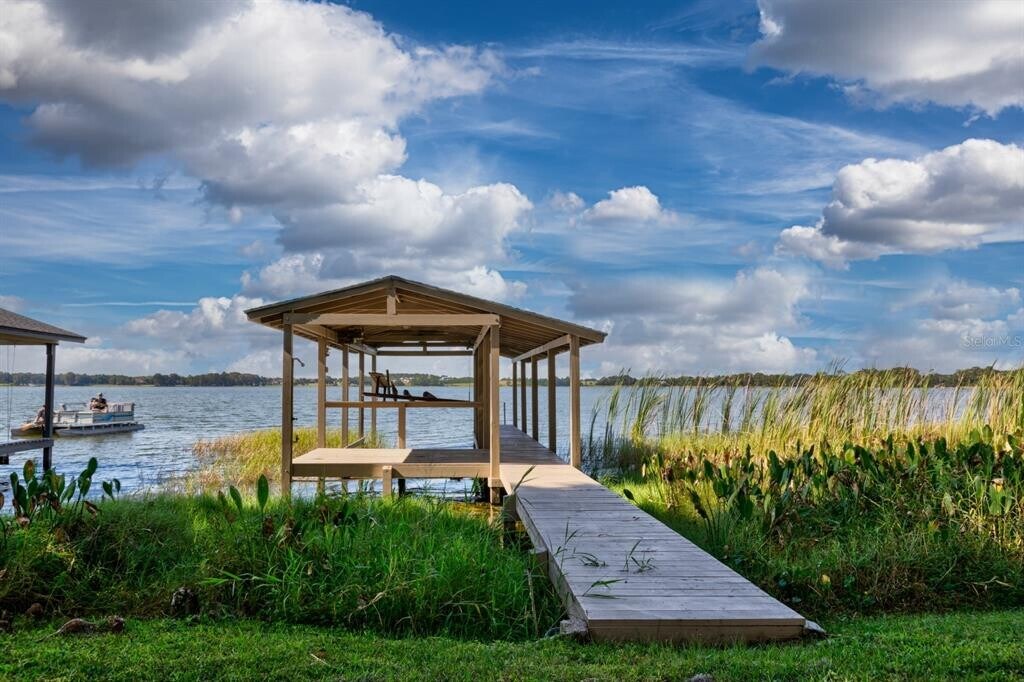 Experience the charm of this stunning Mount Dora Chain of Lakes waterfront home nestled near the serene Trimble Park. Imagine waking up to breathtaking lakefront views,complete with your own private dock,slip,and boatlift — perfect for endless days of fishing and skiing on the tranquil Lake Carlton,a hidden gem free from the hustle and bustle of larger lakes on the Harris Chain. This inviting residence boasts a circular paver driveway leading to expansive living spaces designed for unforgettable entertaining and cozy family gatherings. The galley-style kitchen is conveniently located nearby,flowing seamlessly into a massive,screened porch equipped with a double sink — ideal for indoor-outdoor living. Retreat to the spacious Master suite,your personal sanctuary offering ample room to relax or create a home gym,abundant closet space,and a luxurious bathroom with a refreshing shower. The thoughtfully designed split floor plan includes two additional bedrooms and a full bathroom with tub/shower,providing comfort and privacy for family and guests. A versatile bonus room adjacent to the kitchen opens to the porch and outdoor areas,ready to adapt to your lifestyle needs — whether as a home office,playroom,or hobby space. Perfectly situated less than ten minutes from downtown Mount Dora and just 45 minutes from Orlando International Airport,this home offers the best of both worlds: peaceful lakeside living with easy access to city amenities. Enjoy the nearby public boat ramp,extra parking,camping spots,scenic walking trails,picnic areas,playgrounds,and the natural beauty of Trimble Park. Don’t miss your chance to enjoy this exceptional lakefront retreat — call today to schedule your private tour! MLS# G5110302