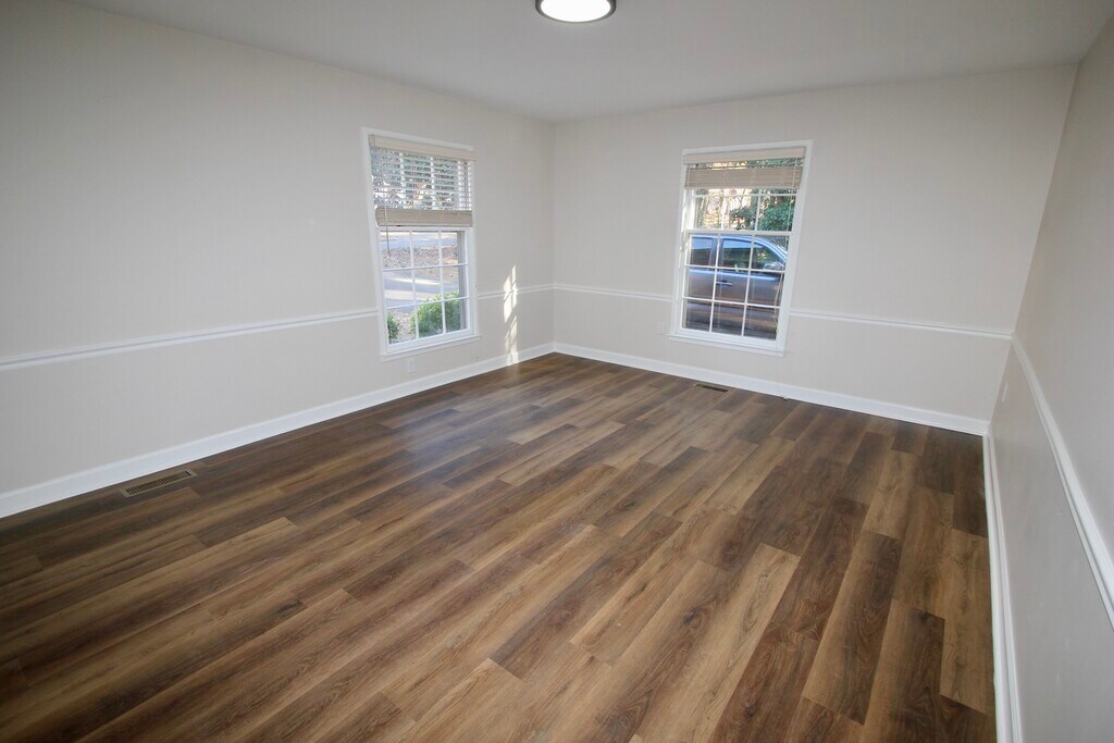 Fully remodeled Midtown single family Ranch home, 5 minutes from North Hills Mall. Brand new paint throughout entire property ceilings, walls, closets, baseboards, everything. Brand new bathrooms with custom tile floors, paint, new custom tile shower, brand new toilets, sinks, plumbing and vanities. Brand new LVP floors throughout entire home, along with new granite countertops in kitchen, new sink and plumbing and remodeled cabinets and new custom kitchen subway tile backsplash. Private fully fenced in back yard. Home also has large storage shed cleaned up and painted and is 16 ft x 13ft in back yard perfect for storage and/or for a workshop as it is equipped with power and light. Great mix of wonderful location being so close to North Hills and 440, very quiet neighborhood with easy access to Raleigh Greenway System. Home is ready for quick move in. Tenants are in charge of paying and setting up all utility services, internet, etc.