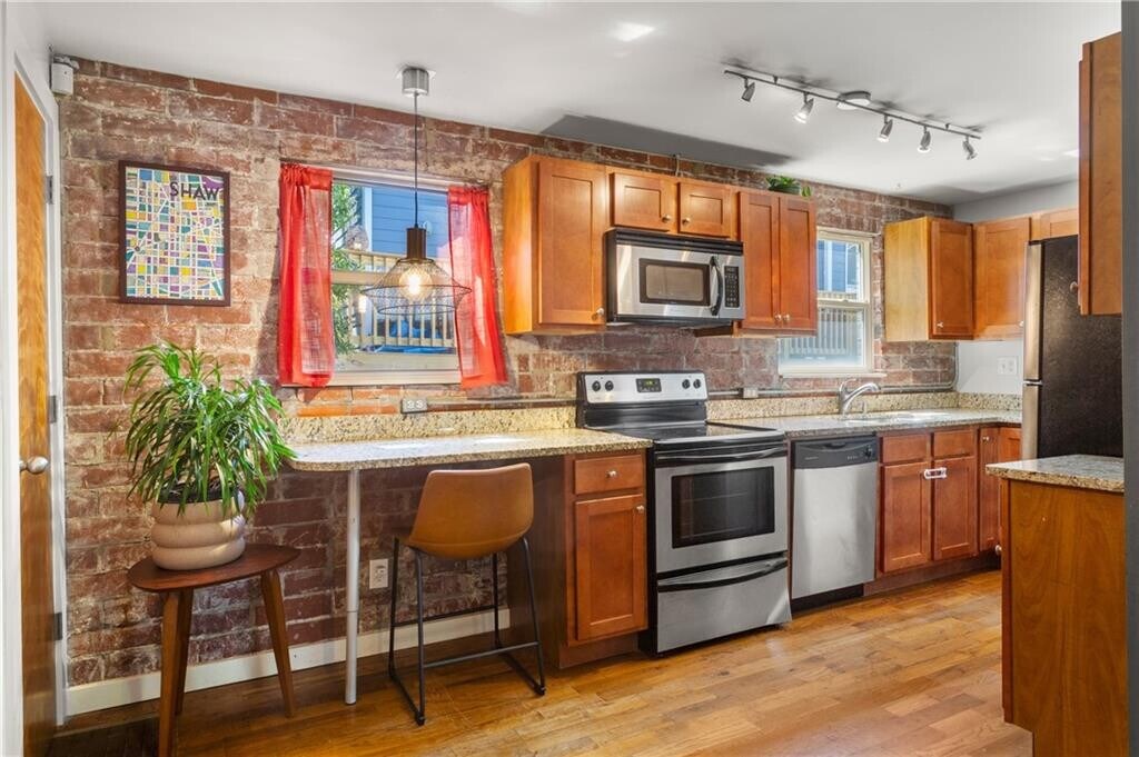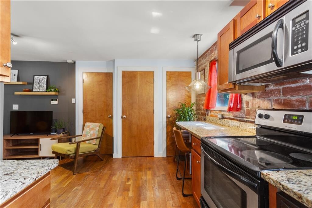 This small but gorgeous gem features real hardwood floors,exposed brick walls,and modern finishes. The kitchen boasts granite countertops,stainless steel appliances,and a breakfast bar. Enjoy the convenience of in-unit laundry. Relax on your private deck and take advantage of included off-street parking. Close to GA State,the Capital,Mercedes-Benz Stadium,the airport,I-75/85,and downtown,this condo offers quintessential in-town living with great views. Explore new dining options in nearby Summerhill and shop at the new Publix just minutes away. Don’t miss out on this fantastic opportunity!