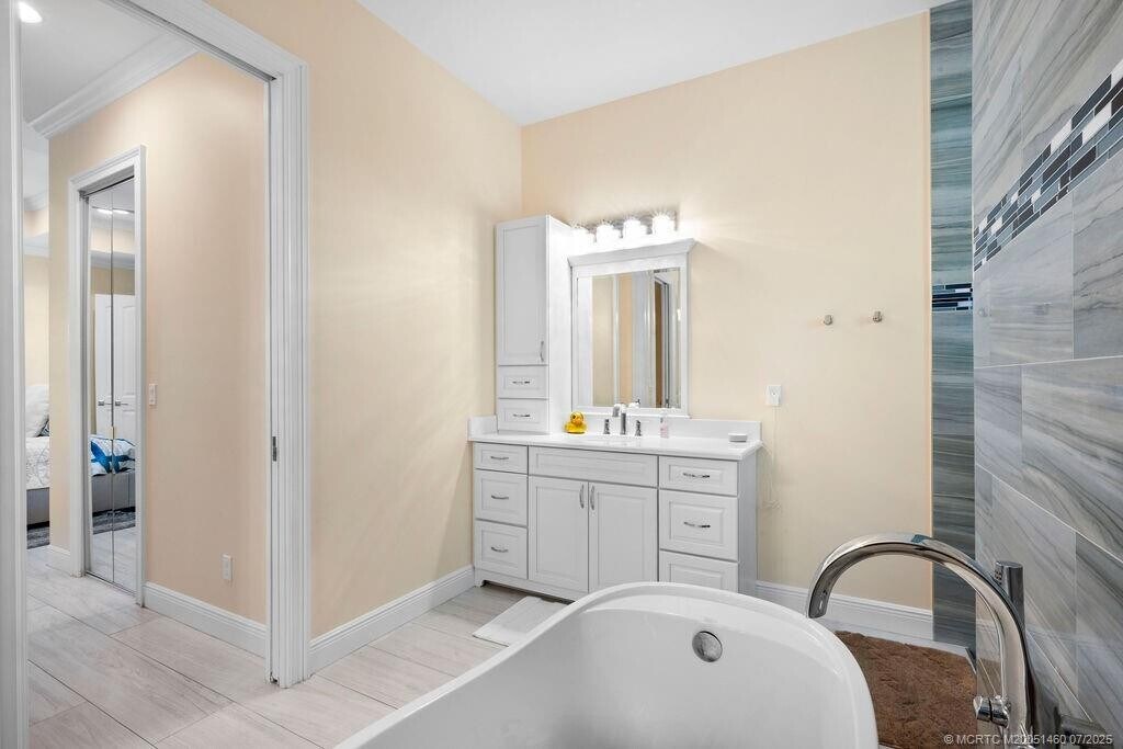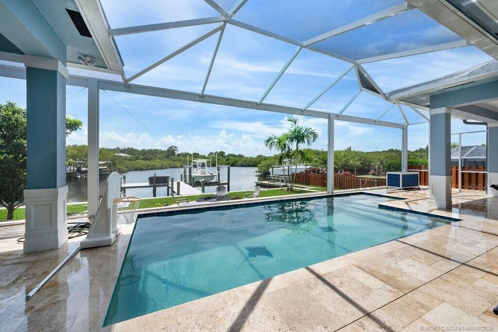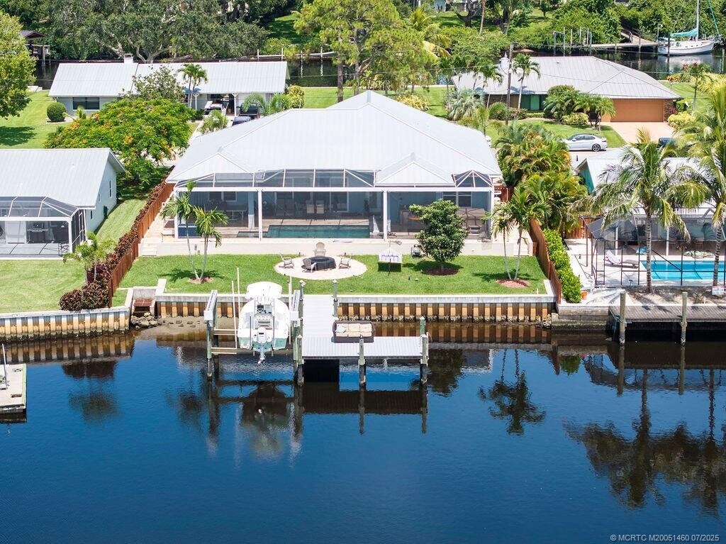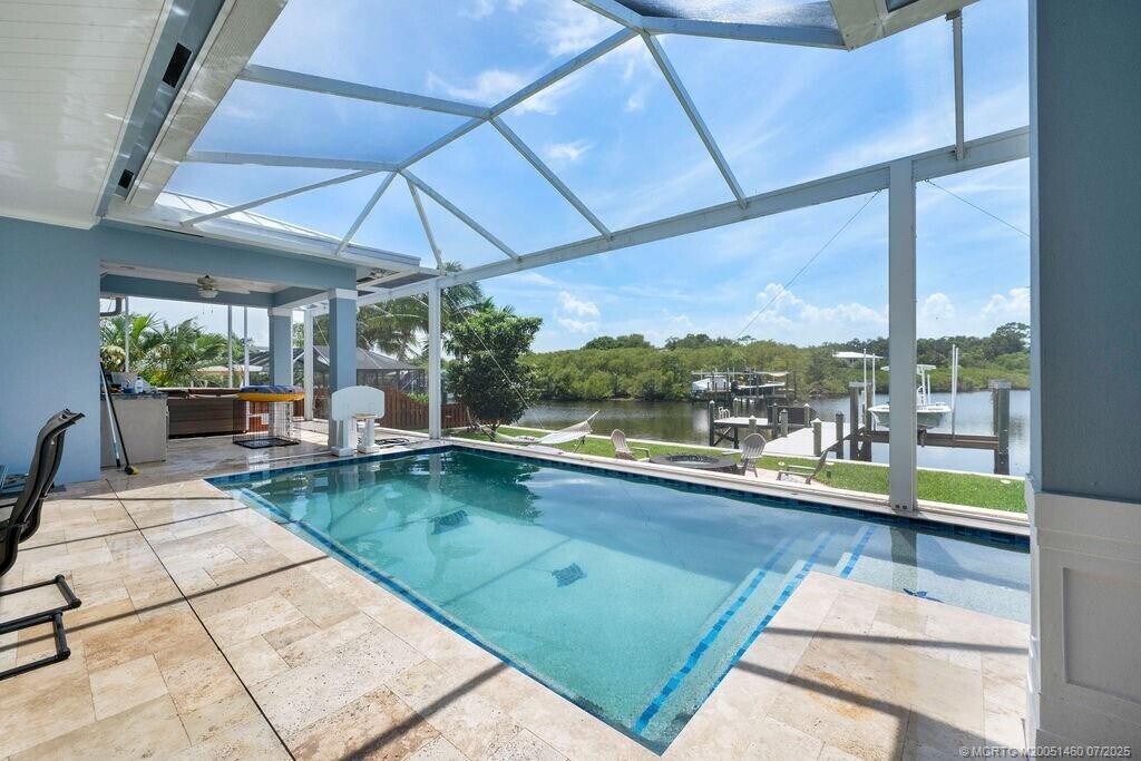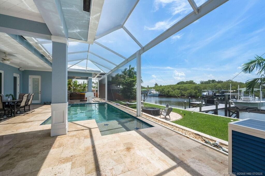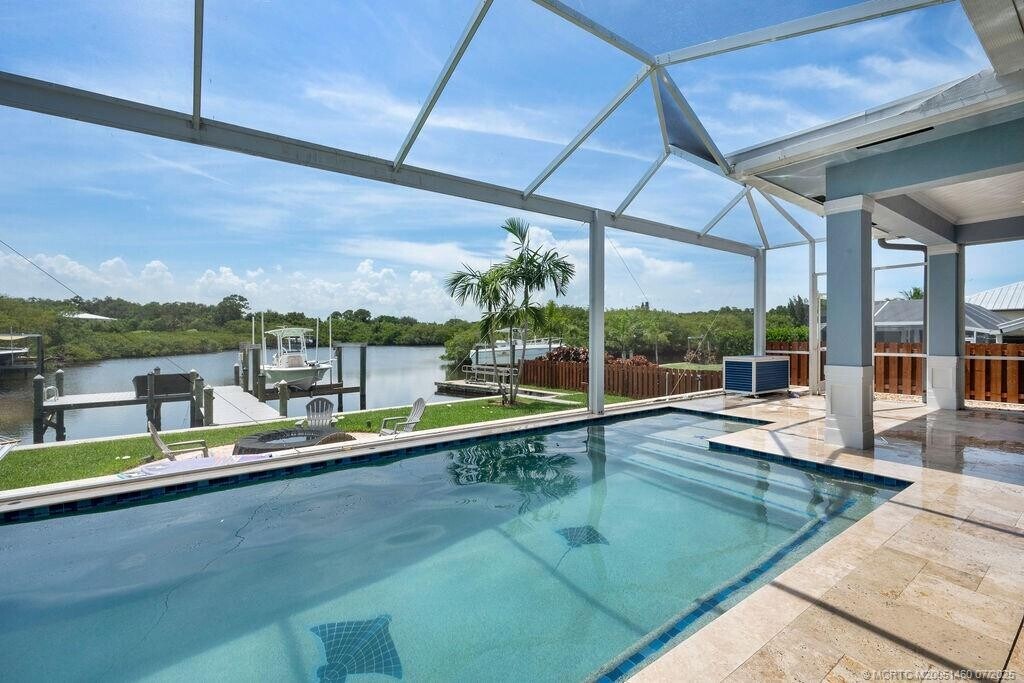 Nestled ?t the ?nd ?f a qu?et stre?t,?n th? water with an amazing & ?er?ne view,in the heart of Palm City,you will find this exceptional 2020 build home. This stunning 3-bedroom,2.5-bath waterfront home offers 2,136 sq ft of open living space. Enjoy canal frontage with a private dock,boat lift and direct ocean access with no fixed bridges to Bessey Creek. Interior highlights include a split floorplan,media room,an office,tray ceilings in the living room,crown molding,Bosch stainless appliances,wood tile floors throughout and impact windows & doors. The open-concept layout flows to an oversized screened patio with an outdoor kitchen,saltwater pool and hot tub—ideal for entertaining. Additional features are a whole-house generator,a gas fire pit and a fully fenced in yard. Located near shopping,dining,golf courses and major highways,this home offers the ultimate in Florida waterfront living. Can be rented short term or annual - furnished or unfurnished. MLS# M20051460