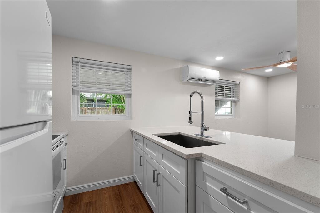 One or more photo(s) has been virtually staged. Gorgeous Mediterranean Revival 2BR + Office/Flex - Pool Access - Steps to Beach & Downtown Gulfport Welcome to your slice of prime Gulfport paradise! Nestled in a beautifully restored historic Spanish Revival property- just 3 blocks from the beach and 2 blocks to Beach Blvd’s amazing restaurants,waterfront watering holes,shops,and boutiques,this 2-bedroom,1-bath unit + bonus office/flex space offers the perfect blend of coastal boho charm,stylish modern updates,and prime location and walkability. Step inside to a thoughtfully renovated interior featuring new luxury vinyl plank flooring,an open-concept living and kitchen area,and a sleek peninsula bar ideal for entertaining. The updated designer kitchen boasts white quartz countertops,glass subway tile backsplash,new appliances,white shaker cabinets,and a deep single basin sink with chef-style pull-down faucet—perfect for cooking up your favorite dishes after a day at the beach. This boutique property enjoys direct access to the pool for easy dips on warm days,private off-street parking,and a fenced-in backyard and enjoy in your own little patio outdoor space. Whether you’re looking for a full-time residence,a snowbird retreat in one of Gulfport’s most desired and walkable locations,this gem checks all the boxes.