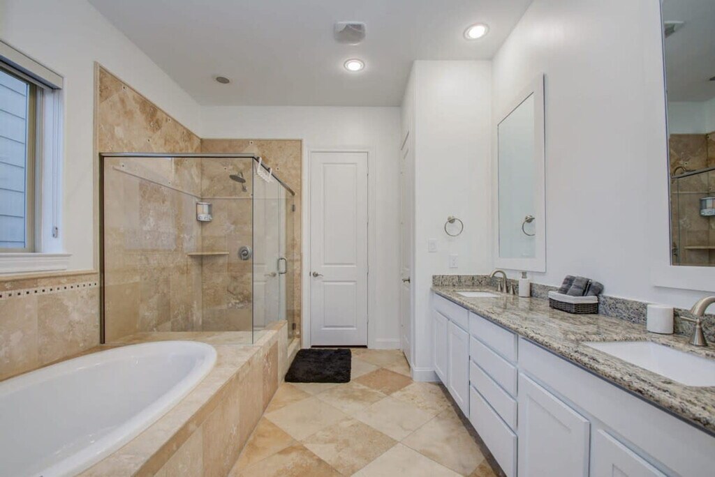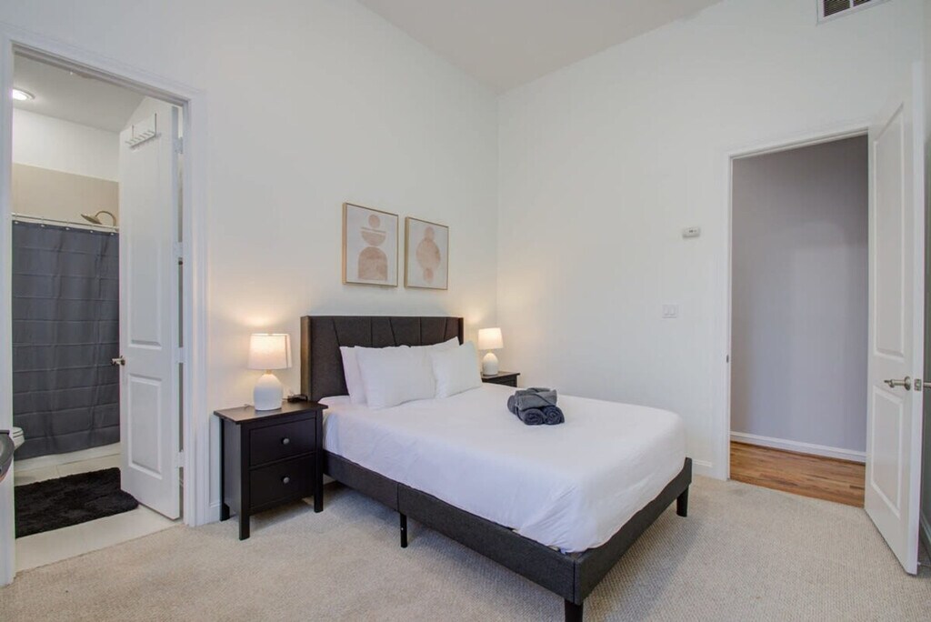 Feel at home in this centrally located Houston home, just minutes from Memorial Park, Downtown, and the Energy Corridor. This 4-bedroom home with 3.5 bathrooms has all the bells and whistles. This home features 12’ ceilings and rich oak hardwood flooring for a spacious, luxurious feel. The fully equipped kitchen includes stainless steel appliances such as a fridge, freezer, stove, oven, dishwasher, and microwave. The oversized kitchen island features bar seating. The dining area has a dining table with seat settings for 8, place settings and dining utensils, and a wine cooler and bar area. The living room has an open-concept layout, couches, coffee tables, a designer rug, a flat-screen TV, high-speed Wi-Fi, and glass patio doors with direct access to the backyard. The spa-like en-suite bathroom has a bathtub and glass walk-in shower. Essential toiletries are included, such as toilet paper and towels. Free parking is available in the two-car garage and on the driveway. House-trained pets are welcome with a non-refundable pet fee of $150 per pet, with a maximum of 2 pets per stay. Located in the much-desired neighborhood of Cottage Grove, you get all the perks of a luxury home while conveniently located to many of Houston’s highlights. Nearby attractions include The Houston Museum of Natural Science, Minute Maid Park, and exciting neighborhoods such as Midtown, Washington Avenue, and Montrose. Smoking of any type is not allowed and violations are subject to a $450 fine plus the cost to clean, deodorize, and repair damages. No parties or large unauthorized gatherings of any sort are allowed. No street parking is allowed due to City Parking Regulations. The maximum number of cars allowed are 2 cars in the garage and 2 cars in the driveway. Check-in is at 4pm and check-out is at 10am. The nightly rate includes the first six guests, and with each additional guest, a $29/night fee will be applied. In order to comply with local noise ordinances and occupancy regulations, and prevent unauthorized parties, a noise alert device has been installed in this home. The device does not record nor store sound data, and only functions to measure decibels and send alerts in case reasonable noise levels are exceeded. Work stations with desks, chairs, and lighting are available. Registration Number: STR-2025-000452 [SI]