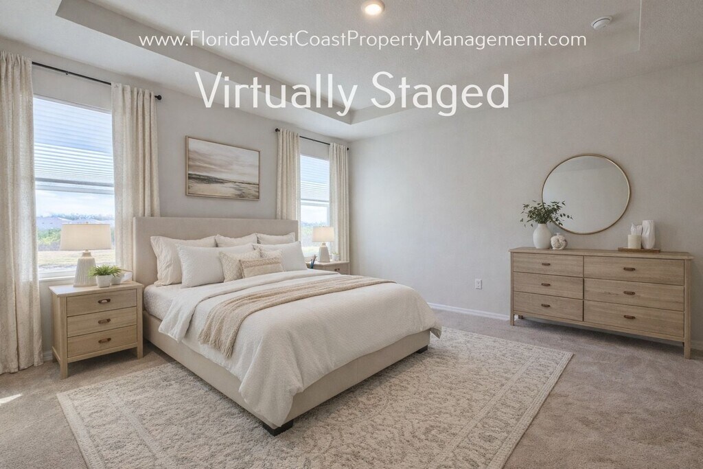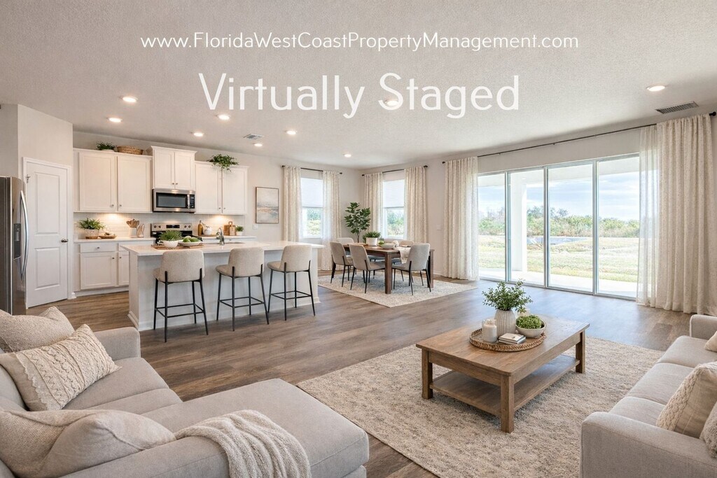 Welcome to the brand new Lantana Floor Plan by DRH, located in Silverstone North community in Palmetto, Florida. ** Some photos reflect virtual staging- the home is new and leased unfurnished** This stunning home boasts 4 spacious bedrooms and 2.5 bathrooms, including a primary suite with dual closets, dual sinks, and soaker tub plus stall shower. The home's design features volume ceilings, trey ceilings in the primary suite, and some rooms equipped with ceiling fans. Two bedrooms are situated at the front of the home and have easy access to the full hall bath. Bedroom three is situated to the side entry and has easy access to the half bath/powder room. The primary suite sits on its own just off the living room. We have included a builder floor-plan for your convenience in the photos. The large kitchen is a chef's dream, complete with a pantry, stainless appliances, gorgeous Quartz counters and a large island for extra prep space or entertaining. You will appreciate the open concept design as the kitchen has direct access and views to the livingroom and well appointed eat-in area! The separate laundry room comes with a full washer and dryer for your convenience and direct access to the 2 car garage with wash sink. Outside, enjoy your own patio space and take advantage of the community amenities, including a pool and a tot lot/playground. With laminate/ LVP flooring in the main living areas and carpeted bedrooms, this home offers a perfect blend of comfort and style. Experience the best of Florida living in this brand new build in Palmetto. ****Please visit our direct website for all home information: **** *** WE DO NOT MARKET ON CRAIGSLIST!*** ** Some photos reflect virtual staging- the home is new and leased unfurnished** *No pets at this time. *Renters Insurance required *13-15 month lease offered/ unfurnished. *One time move in make ready move -In fee of $250 due at lease start *In order to schedule a showing you will be asked to provide a copy of photo ID of each person (18 and over) that will be touring with you. *HOA rules and regs apply. Silverstone HOA has a ONE TIME rental application and ONE TIME fee due prior to lease start, $125 and please allow 7-10 days for HOA confirmation. * Owner pays monthly HOA DUES! *$75 app non refundable fee per all adults 18+. A larger deposit could be required depending on application result. Application fees are not refundable. Each person 18 and older must complete their own application for the home. *If an application is submitted, and it has missing information , this can delay the process. Please fully complete applications for each party residing 18 and up. *A home is only held off the open market with a fully completed and approved application and deposit. *Silverstone North is a DRH community and all photos of community are courtesy of DRH. ** Move in funds are paid in certified funds/ APPLICATION FEES NON REFUNDABLE**