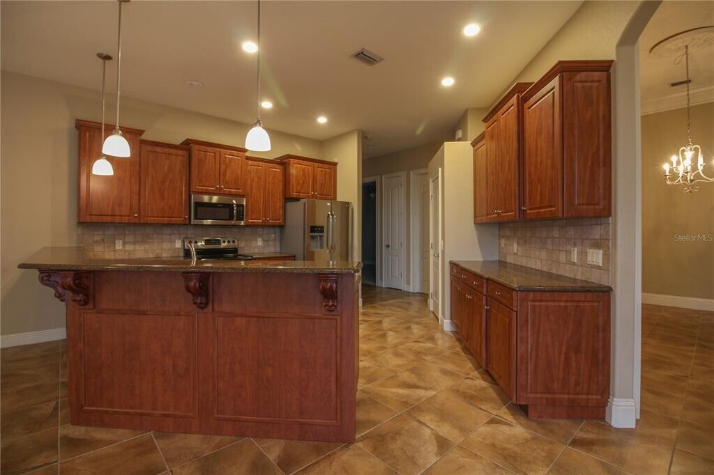 Elegant 5 bedroom 3 bathroom home in gated Vintage View. Home features a large open floor plan with 10-12 foot ceilings throughout. Front door opens into the foyer and formal living and dining rooms with sliding glass doors allowing lots of light. Large kitchen with wood cabinets and granite counter tops opens to family room with breakfast bar and lots of counter space. Stainless steel appliances,hanging pendant lights and tiled breakfast nook round out this wonderful kitchen. Family room has double tray ceiling and is wired with surround sound speakers. Master bedroom has a tray ceiling and large sliding glass door leading to back patio. The master bath features double walk-in closets,separate his and hers vanities,private water closet and large walk-in shower. The center piece to the master bath is the large garden tub with elegant mirror and fixtures. Bedrooms 2 and 3 are located just off kitchen and share a hall bath. Bedroom 4 is a private suite with its own full bathroom and access door. Bedroom 5 is located at front of home and could double as home office or den,with double doors and a closet. Back of home features a large covered patio with ceiling fans. With a three car garage,pavered driveway,and lots of storage space,this home is a must see! MLS# L4956913