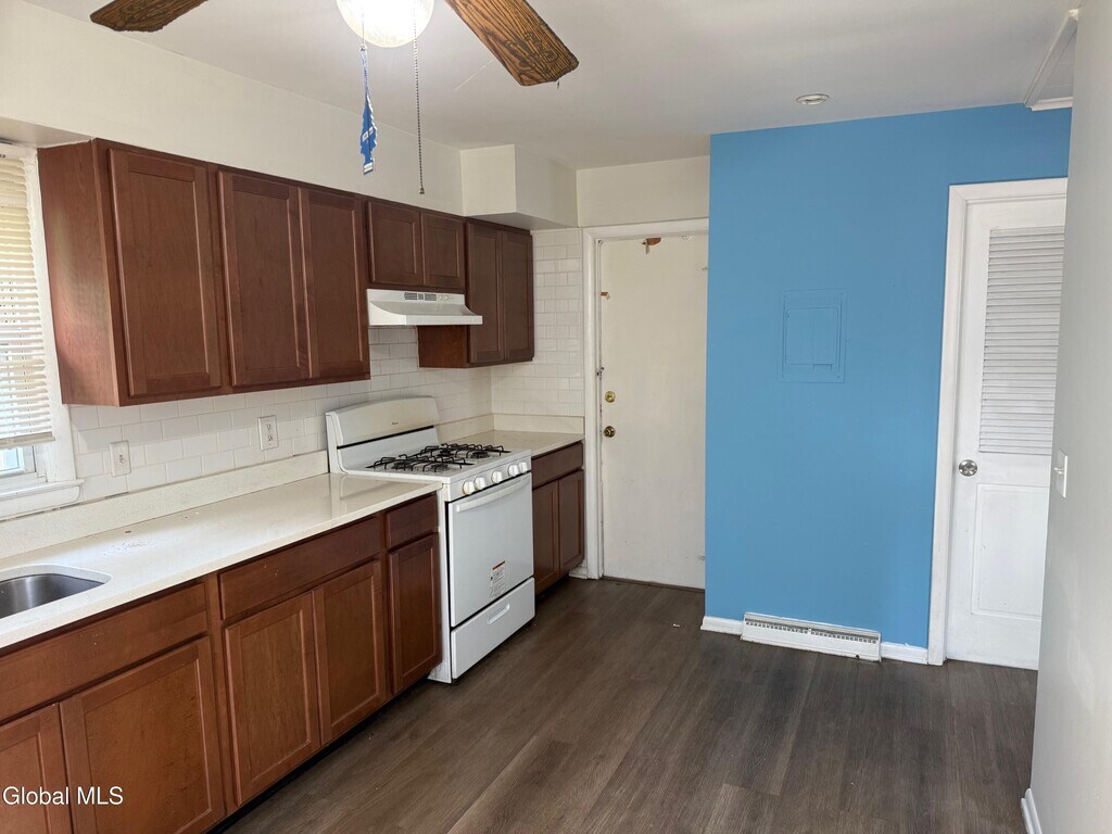 Freshly painted and updated 2 possibly 3 bedroom apartment. Laminate floors throughout 1.5 baths with main level laundry. Spacious LR with small family room,1 dining room. 2 bedrooms upstairs with full bath and tile floors. Very quiet and private location. References encouraged.