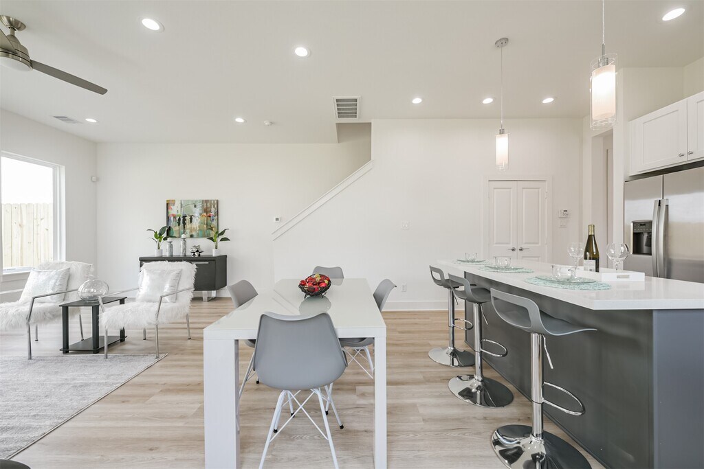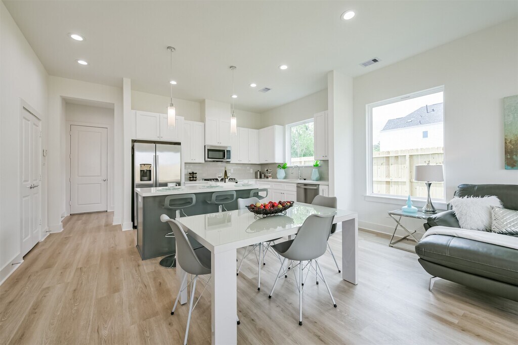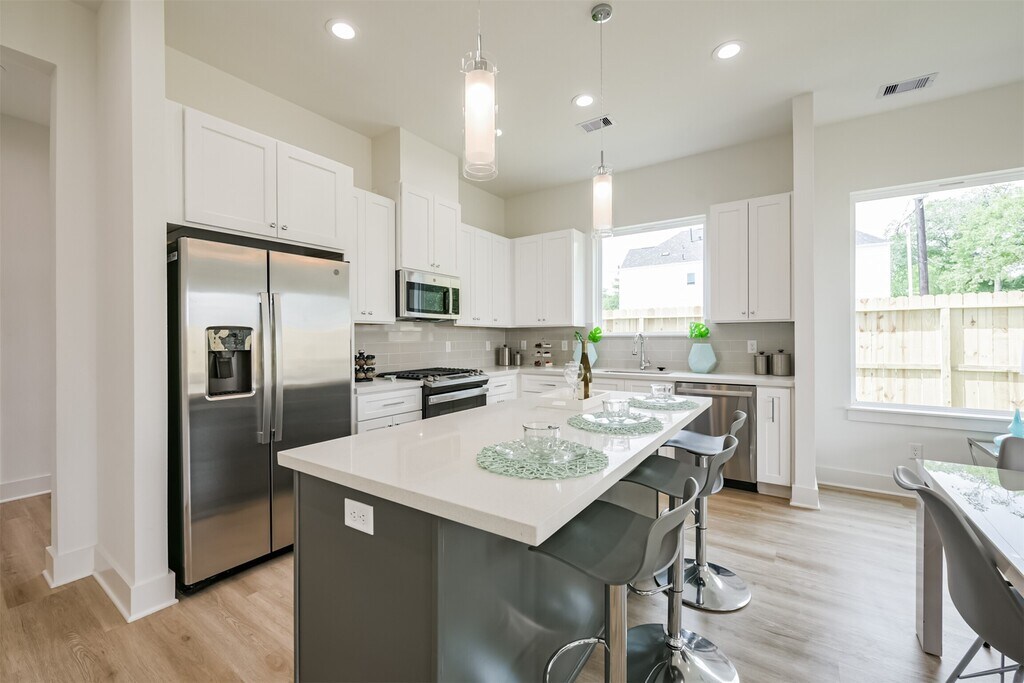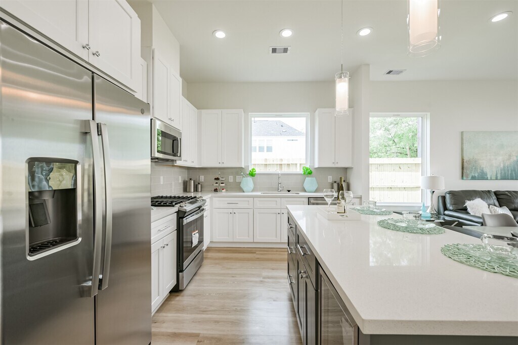 STUNNING! 3 bed 3.5 Bath Home features First floor Living with Open Concept Kitchen w/island Breakfast Bar comfortably flows into Dining area,Light & Bright spacious Living room. Large Primary Bedroom comes with 2 walk-in closets (HIS/HERS),Soaking tub,Separate Shower & Double Sinks. Nice-sized Secondary bedrooms each with private full bath! Private Fenced in Backyard and your own Driveway with 2 car Garage. Smart Home (WiFi Thermostat & Garage Door opener,) LED Lighting,Soft close Drawers/Cabinets,SS Fridge+Washer+Dryer=Included,Quartz Countertops,Wood-Like Planks on Flooring and much more! One of Conveniently located near Garden Oaks/Oak Forest,Heights & Downtown Houston. No HOA,not in a Flood zone! MLS# 12583300