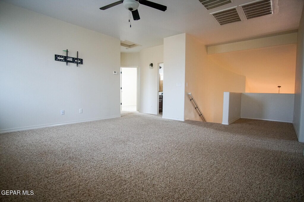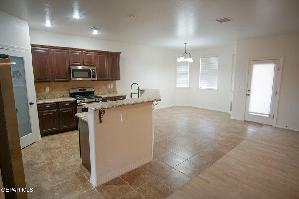 Located in El Paso's Upper Valley,this beautiful home features 5 bedrooms,2.5 bathrooms and a 3 car garage! A large bright formal living room welcomes you inside. The kitchen features stainless steel appliances,a large pantry,bartop seating,and is open to the dining and den. Downstairs,you'll find a half bath for guests,a laundry area,and the primary bedroom. As the only bedroom downstairs,the primary offers privacy and comfort with a large walk-in closet and ensuite bath complete with double vanities,a soaking tub,and stand-up shower. On the second floor,enjoy the flexibility of a large loft,4 guest bedrooms and a full guest bath with a double vanity. Create your own outdoor retreat in the landscaped backyard. Relax under the patio with the cozy fireplace & outdoor TV. Please verify schools. We can only work with a two week move in time frame/hold period. Rental price includes enrollment in a residence benefits packaging of $30 a month. To schedule a showing please see Confidential Remarks.