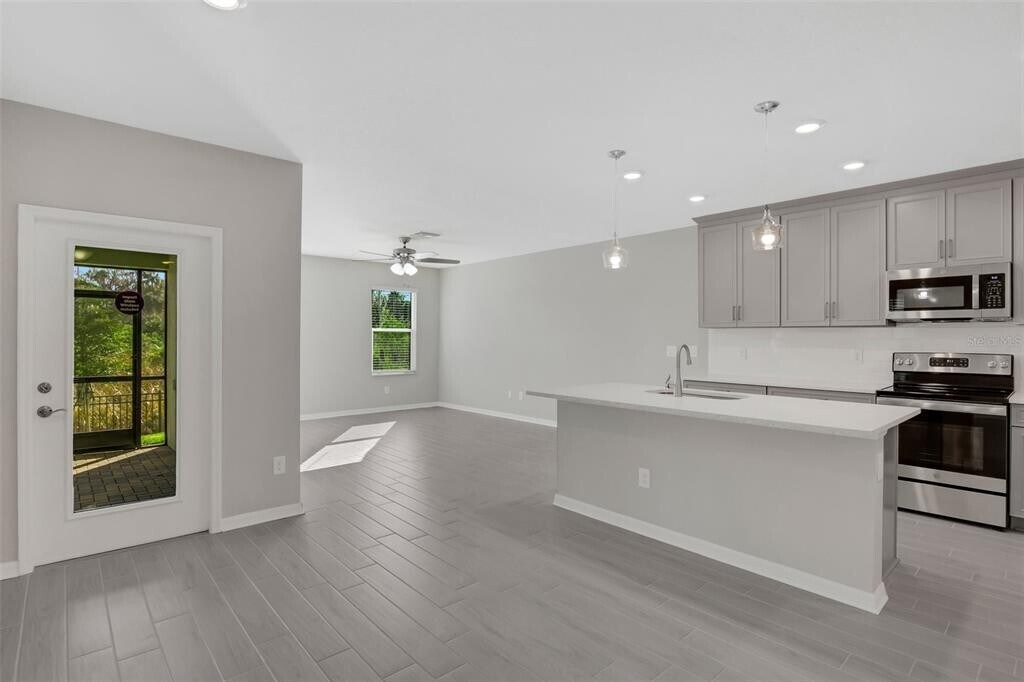 Available NOW! Absolutely gorgeous NEWER END-UNIT townhome with a 2-CAR GARAGE and peaceful PRESERVE VIEWS,located in the sought-after,gated community of Trevesta. This spacious home offers 1,860 SF of thoughtfully designed living space with an open-concept layout and no wasted space. The first floor features a bright living/dining area,a convenient half bath,and a beautifully appointed kitchen with 42" CABINETRY,a large island with seating,GRANITE COUNTERTOPS,STAINLESS STEEL APPLIANCES,and an under-mount sink—perfect for everyday living and entertaining. Step outside to the paved lanai and enjoy the tranquil preserve backdrop. Upstairs,the primary suite includes an en-suite bath,along with two additional bedrooms with generous closets,a second full bath with DUAL SINKS,a versatile landing ideal for a desk or sitting area,and an upstairs laundry room with a utility sink. Trevesta offers resort-style amenities including a pool,fitness center,playground,and scenic ponds,with convenient access to I-75 and an easy drive to Sarasota,Tampa,and St. Petersburg. Annual lease (12-month minimum). Unfurnished. One medium-size dog allowed. Tenant pays all utilities. First month’s rent + one month security deposit required. MLS# A4678333