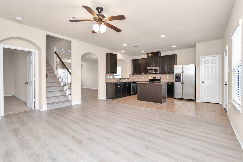 Discover this exquisite move-in ready home in Plantation Lakes with charming curb appeal. This immaculate two-story brick home features four bedrooms three and a half bathrooms,and a comfortable floor plan. With designer touches like arched doorways,rounded corners,and wrought-iron stair spindles,the home exudes elegance. The kitchen boasts gas range cooking,granite countertops,stainless steel appliances,new wood flooring (6/2022),an upgraded HVAC system will help to reduce your electricity bill (2/2022). A spacious 1st floor primary bedroom with a walk-in closet,three additional bedrooms,a game room,and an upstairs laundry provide ample space. Enjoy the covered back patio,perfectly sized yard,and energy efficiencies of double-pane windows and a radiant attic barrier. Washer,dryer,and refrigerator are all included. Zoned to Cypress-Fairbanks ISD and conveniently located near major roads. This home offers both style and convenience. MLS# 56709035