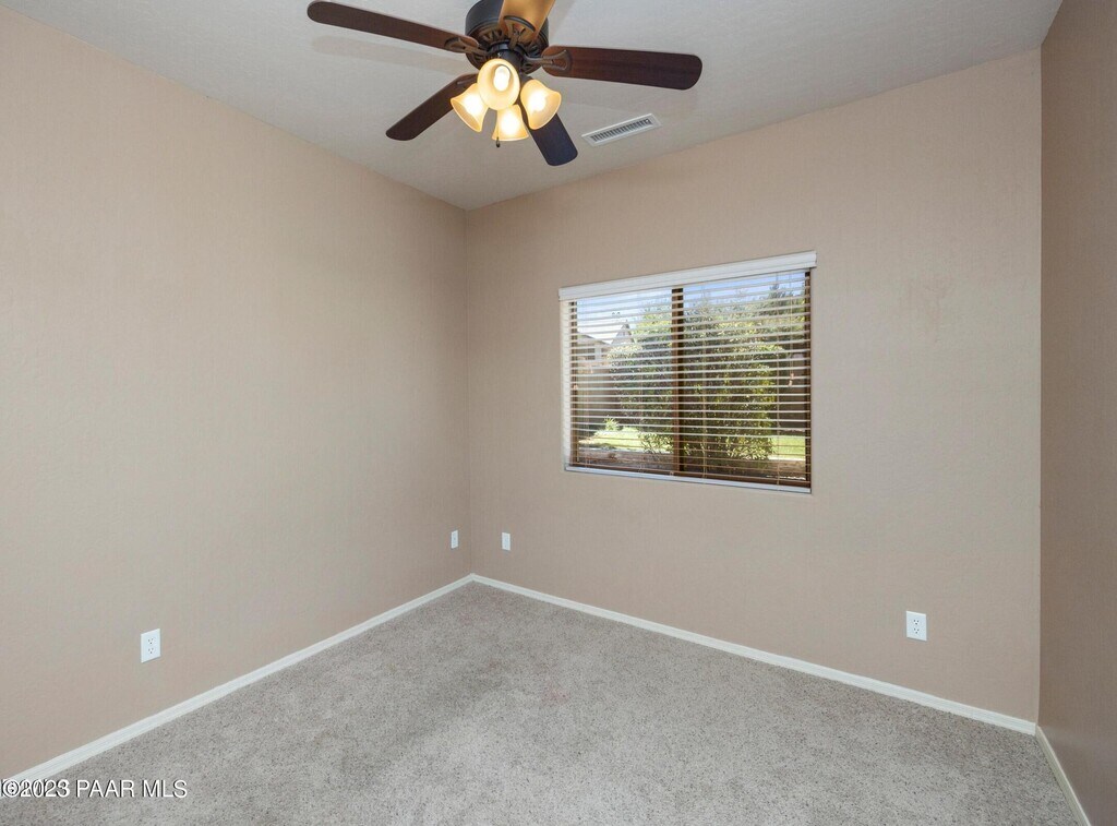 Privately located on a cul de sac & adjacent to open space. Open living room,gas fireplace and awesome views of the beautiful back yard. Primary bedroom with en suite,garden tub,shower and walk in closet. 2 guest bedrooms,full guest bath + den/ home office or potential 4th bdrm. Completely landscaped backyard with a grass lawn,side yard with a double gate,and a raised deck with views of Mingus Mountain. LEASE INCLUDES ATHLETIC CLUB ACCESS,pickle ball,racquetball courts,playgrounds and a dog park. Quick access to trails for bicycling and hiking. Nearby shopping,medical and entertainment district. 1 Small 10lb< dog would be considered with a $250.00 deposit and will increase rent by $50mo. No Students