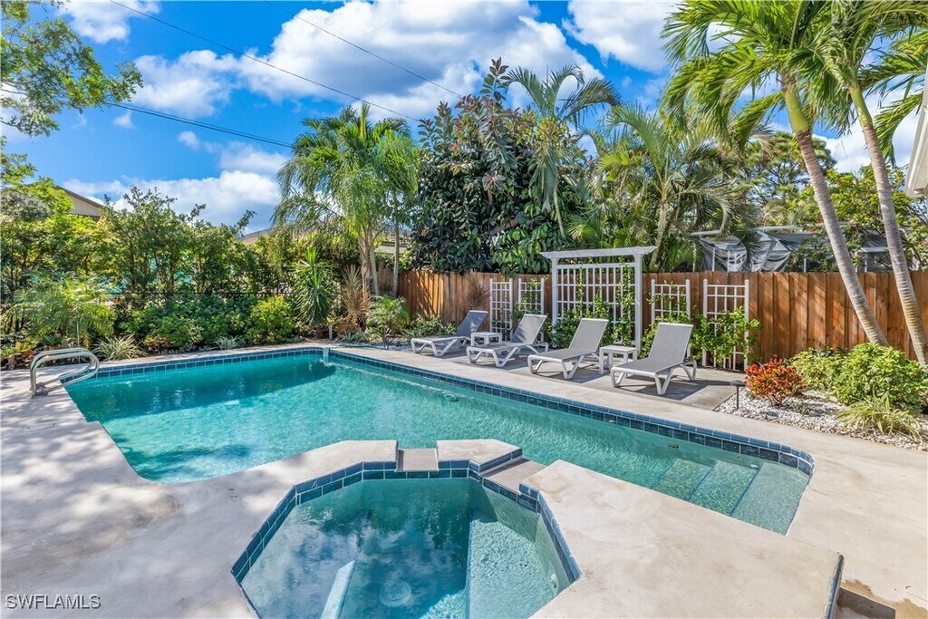 Looking for a little Slice of Naples Paradise? Welcome to our Naples Beach Cottage! Located Just 5 Minutes From the Beach,in the desirable 500th Block of North Naples,this Cozy 2 Bedroom,2 Bathroom cottage is the perfect beach getaway. Each bedroom offers a comfortable King size bed. Both bathrooms in the home were recently remodeled. We cordially invite you to enjoy your very own backyard Private Pool & Spa Oasis. There is plenty of room to relax poolside in one of the comfortable lounge chairs on the sun deck or in a cozy chair under the pergola. Pool towels and pool floats are provided for you when you're relaxing by the pool. For those days that you would prefer to spend on the beach,Delnor-Wiggins Pass State Park & Vanderbilt Beach are just a quick walk or bike ride away. This home is located less than a mile from the Delnor-Wiggins entrance. Beach chairs,beach towels,a wagon and a cooler are waiting in the garage for you to use on the white sandy beaches. If pedaling around the Naples area is what you are interested in,there are 4 bikes in the sheds on the side of the house. Bike locks are provided on each bike. After enjoying your day in the pool or on the beach,you can hang out in the screened-in lanai swinging on the porch swing,reading your favorite book. Grill up something delicious,or try one of the outstanding restaurants nearby. If you just want to hang out on the couch and watch a movie you can be your own personal chef in the fully equipped kitchen. Mercato,Publix,Walmart,Trader Joe’s and Whole Foods are all nearby. To get you started on your relaxing vacation,we have provided you with some starter shampoo,conditioner,soap and body wash. The kitchen has dishwasher tablets,paper towels and some complimentary coffee and tea. There is a washer and dryer for your use during your stay. We offer free Wi-Fi. Whether you are traveling with family or friends you really can’t beat this great location and all of its amenities. We look forward to hosting you in our cozy cottage.