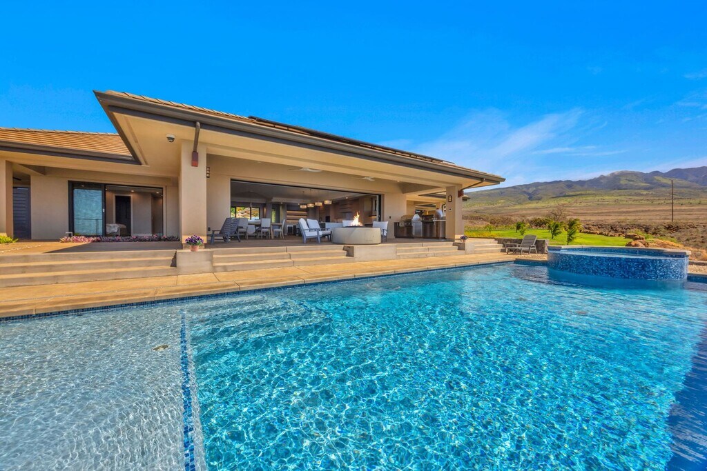 Luxury Ocean View Estate for Rent – 564 Anapuni Loop, Lahaina, HI 96761 Available for Long-Term Lease | $17,277.48/month ($16,500 + $777.48 GE tax) Experience luxurious island living in this breathtaking single-level home within the prestigious double-gated Lanikeha community at Kaanapali Golf Estates. Built in 2024 and lightly lived in by one couple, this immaculate residence combines modern comfort, smart home features, and exceptional design—set on a 1-acre lot with unobstructed ocean views of the Kaanapali coastline, West Maui Mountains, and the islands of Lanai and Molokai. Highlights: • Partially furnished with designer pieces, including a large sectional, 100” TV, and 9-piece dining table • Expansive open-concept layout with central A/C, dual Nest thermostats, Sonos sound system, and soffit lighting in each bedroom • Gourmet kitchen with Sub-Zero refrigerator and wine cooler, Wolf 48” gas range, and Cove dishwasher • Infinity pool and heated spa with waterfall feature, plus outdoor wet bar with Lynx gas grill, pizza oven, and Sub-Zero mini fridge • Two ocean-facing en-suite primary bedrooms with private outdoor showers (not in bath count); one includes a double waterfall shower, the other a soaking tub • Built-in Honey Walnut closet systems and illuminated Svange mirrored medicine cabinets • 3-car garage, 26 photovoltaic panels with two Tesla Powerwalls, solar water heater, and home water filtration system • Ring doorbell with camera, optional security system, and Roomba vacuum included Lanikeha Clubhouse Amenities: Access to the exclusive clubhouse featuring a workout room, infinity-edge pool, and BBQ grills. Located just minutes from world-famous Kaanapali Beach, championship golf at Kaanapali Kai and Royal Courses, and upscale dining and shopping at Whalers Village. Golf carts are popular for exploring the community and surrounding resort area. Rental Details: • Lease Term: 12 months • Rent: $17,277.48/month ($16,500 + $777.48 GE tax) • Tenant pays: base rent, GE tax, electric, cable, internet, water, sewer, gas • Owner pays: trash and landscaping • No smoking, no drugs; pets negotiable • Professionally managed in a quiet, respectful community For inquiries or showings, please contact: Rex Golden, RS-77908 Keller Williams Realty Maui