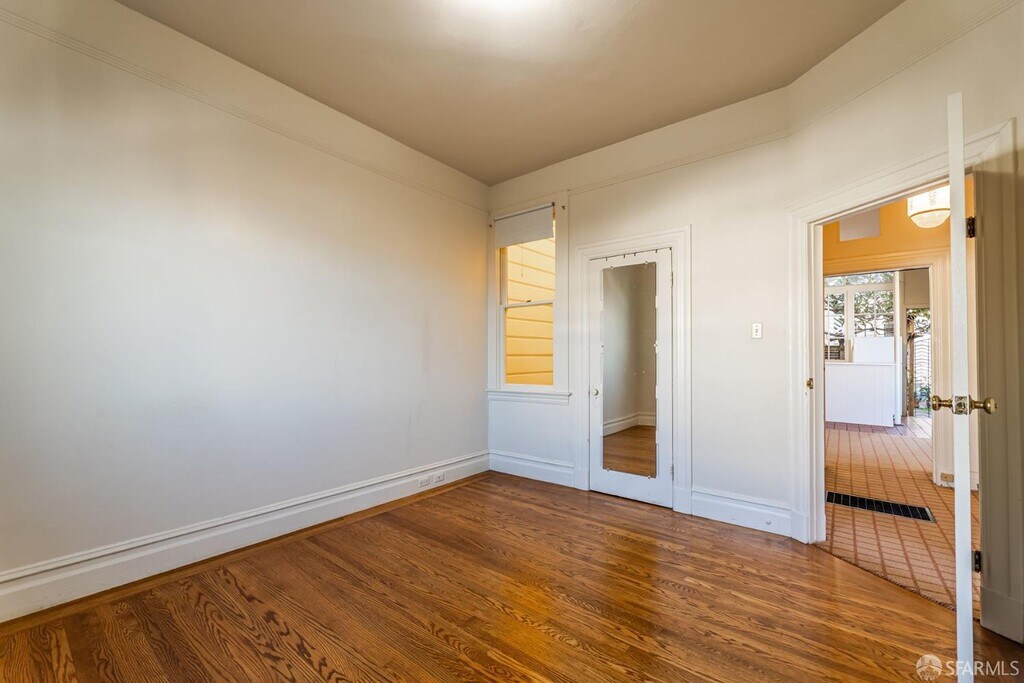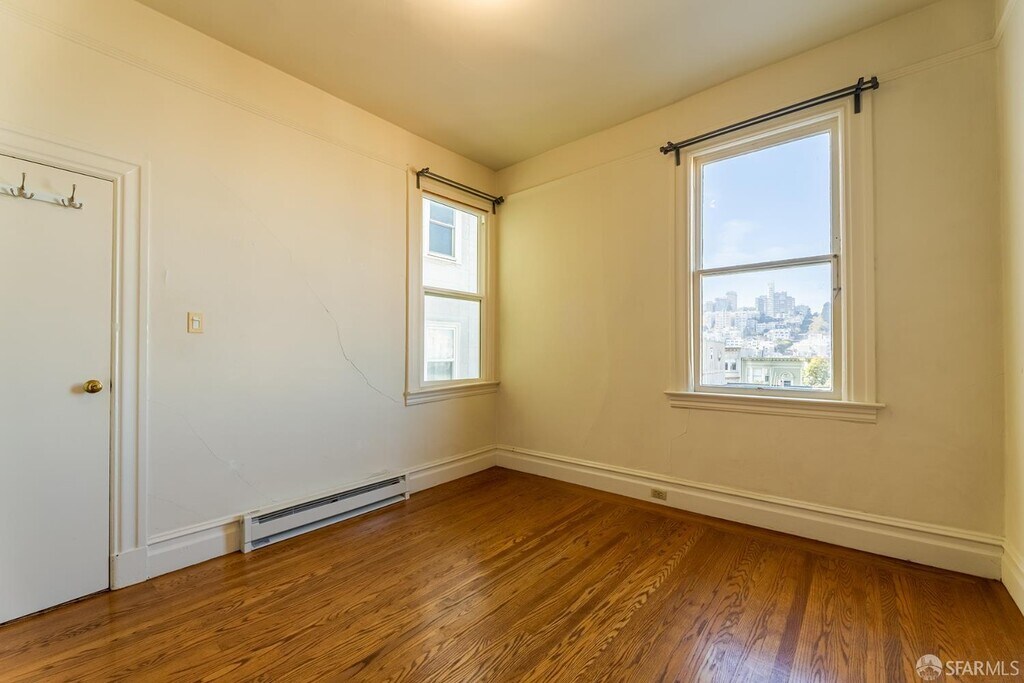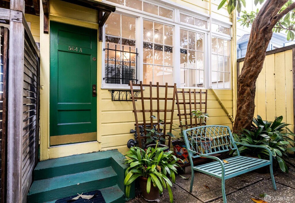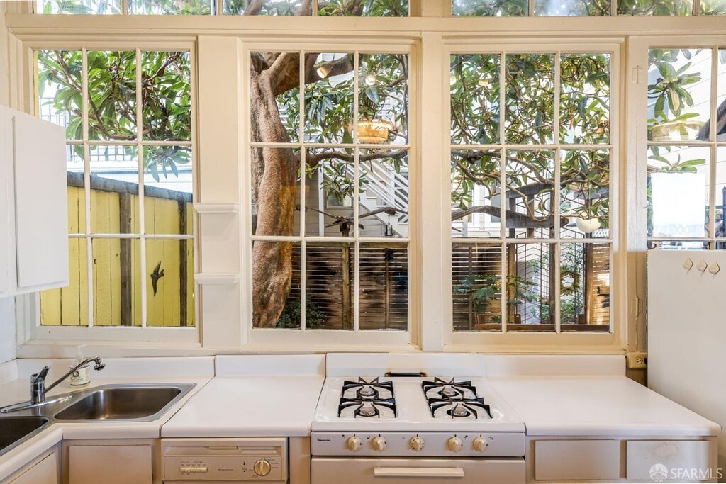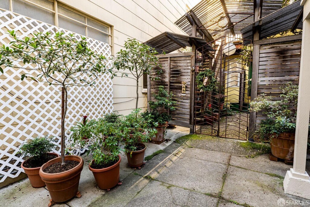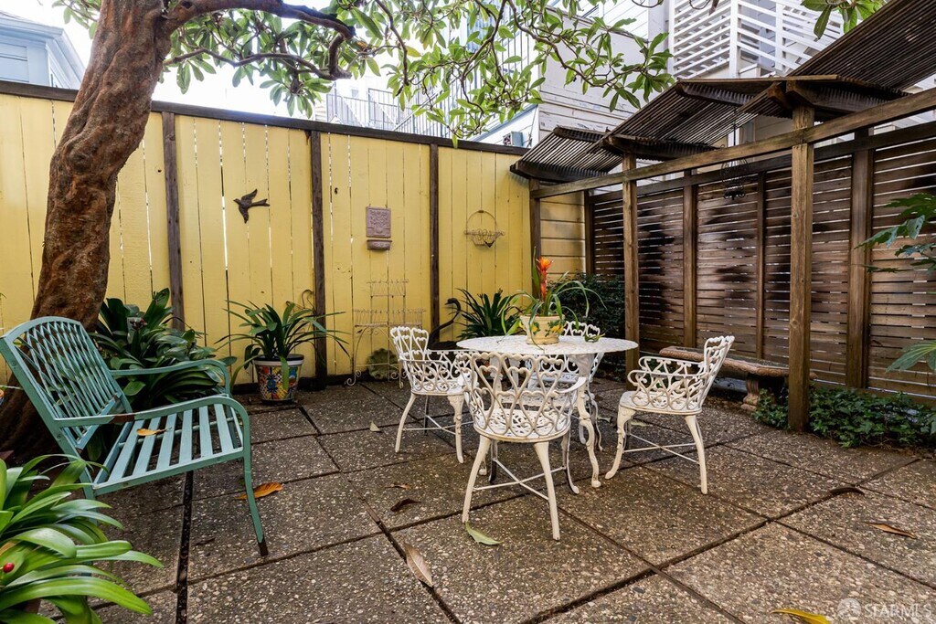 Nestled in a quiet, private setting in the heart of North Beach, this charming garden-level apartment occupies one of two units in a storybook cottage. Step into a spacious living and dining area adorned with tailored carpeting, custom built-ins, and a partial view of the Golden Gate Bridge. The open kitchen is thoughtfully appointed with a gas range, refrigerator/freezer, dishwasher, and double sinks, all framed by large paned windows that overlook the shared garden patioperfect for morning coffee or evening unwinding. Both bedrooms feature warm hardwood floors and tranquil outlooks, while the bathroom offers a shower-over-tub and a window with a view, inviting natural light and fresh air. Downstairs, enjoy the convenience of an exclusive-use washer and dryer and a generously sized private storage room. With a stellar 99 Walk Score, you're just steps from the vibrant energy of North Beachrenowned for its eclectic mix of bars, restaurants, and boutique shops. A 91 Transit Score ensures easy access to public transportation, parks, playgrounds, and the local library.
