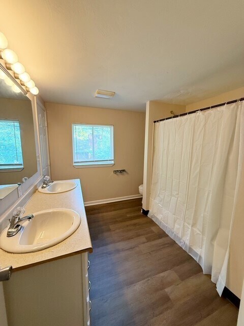 EAST SIDE 4 BEDROOM, BRICK TRI-LEVEL HOME AVAILABLE NOW! This home has recently been renovated to include: Hard surface flooring throughout, main level original hardwood flooring, fresh two-toned paint, updated kitchen and baths, mini-blinds, and some new appliances. *Range and air conditioner installed at move-in.* Home sits on a corner lot with a fenced backyard. 2 car attached garage. *Professionally managed. 2 year lease required. This property allows self guided viewing without an appointment. Contact for details.