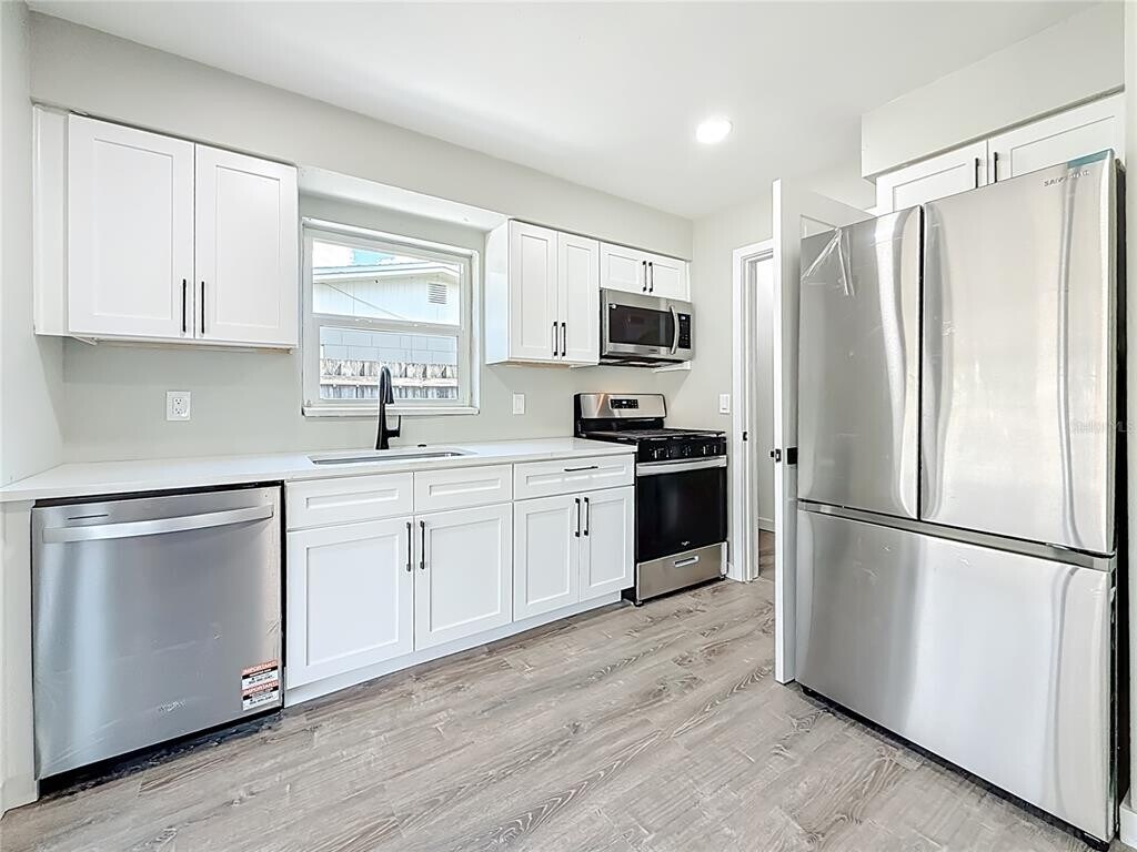 One or more photo(s) has been virtually staged. Welcome to this beautifully remodeled 4-bedroom,2-bathroom home in the heart of Pinellas Park! Step inside to discover a stunning brand-new kitchen with a natural gas stove for a chef’s touch,fully remodeled and ready to enjoy,along with modern bathrooms,fresh paint,and luxury laminate flooring throughout. The home also features brand-new appliances,a new air conditioning system,and energy-efficient windows for added comfort and savings. Enjoy the outdoors on your private deck—perfect for relaxing,grilling,or entertaining with family and friends under the Florida sunshine. Conveniently located near shopping,dining,parks,and some of the area’s best beaches,this home offers the perfect blend of comfort,style,and the true Florida lifestyle. Don’t miss the chance to call this move-in ready gem your new home!