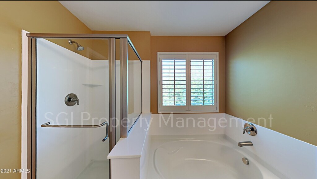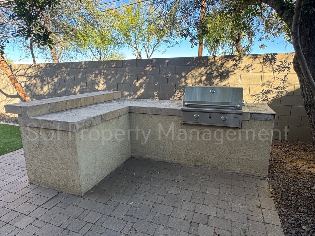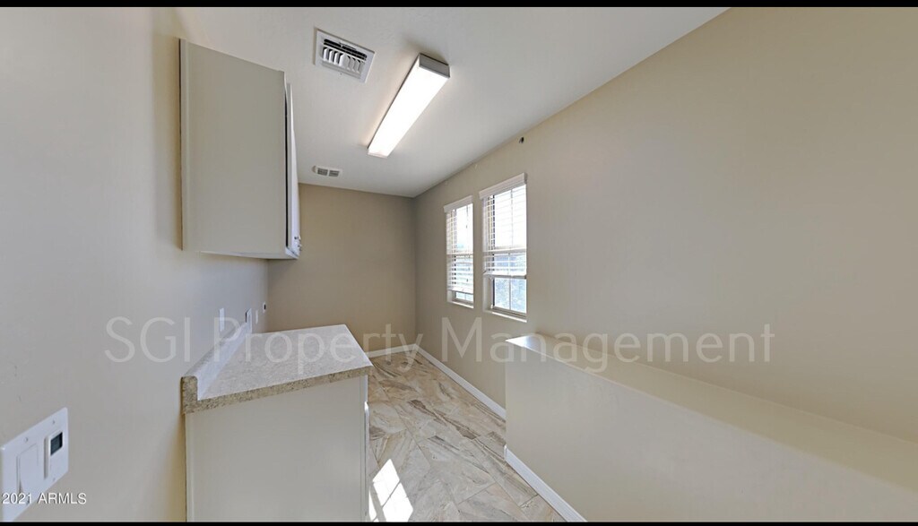 This spacious 2581 sqft Mesa home offers 3 bedrooms, 2.5 bathrooms and a versatile loft. All within a desirable gated community featuring a sparkling pool. the open kitchen showcases an island, granite counters, stainless steel appliances, tile backsplash and rich espresso cabinets. Seamlessly flows into living spaces accented by plank style tile flooring and custom paint throughout. The generous primary suite features a walk-in closet and private bath with dual sinks plus separate tub and shower. Enjoy the private low-maintenance backyard with covered patio, pavers and turf lawn. Sorry, NO pets. Visit our website at Lessee to verify all information. Carpet Community Pool Disposal Dryer Electric Range Gated Community Large Closets No Pets Allowed Tile Washer Washer/Dryer In Unit