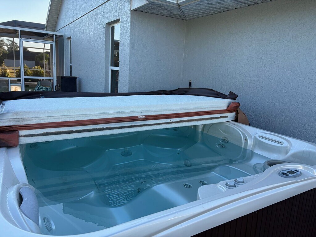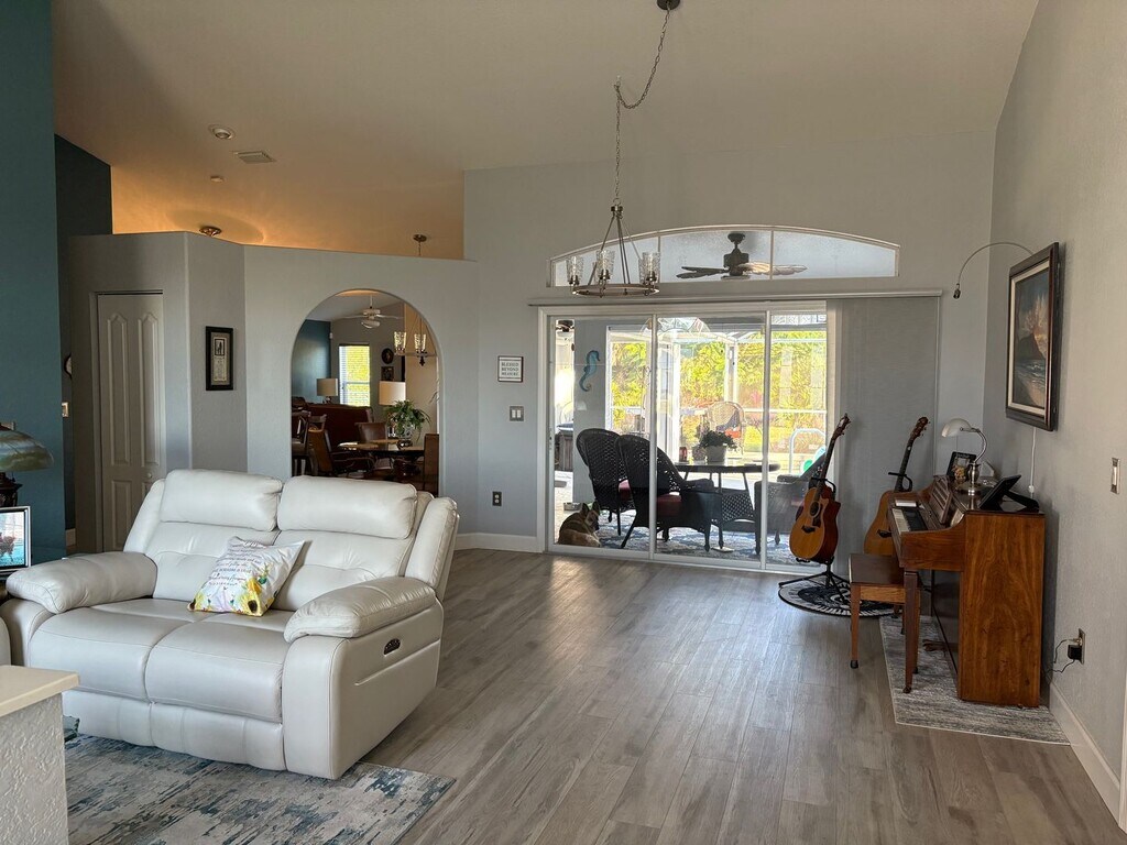 This incredible 3/2 home including a 3 CAR garage with HUGE driveway has tons of perks LIKE A HEATED SALT WATER POOL and HOT TUB! The home has a large Main Bedroom with updated bathroom and granite counters! Kitchen has corian counters and flooring updated throughout to Luxury Vinyl so NO CARPET! Sitting on 1/3rd acre and backing to a large berm so complete privacy in back. AND the great news is that this home is HIGH and DRY (12' above sea level) and NOT in a flood zone! Hurricane protection all around for any future storms will be left for Tenant(s). Owners are realtors and this has been our beautiful home but we are now downsizing locally so want to rent out with option to buy or just rent short term while building or long term so very flexible. Not an AirBNB though. Pets are subject to owners approval and 2 pets maximum. POOL AND LAWN CARE INCLUDED IN RENT