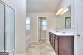 Welcome home to this 5 years young beautifully constructed 3 bedroom, 2.5 Bathroom traditional-styled home. Complete with 2-car garage, this home features open concept living with extended granite countertops in the kitchen overlooking the family room, solid black appliances, and a 5 burner gas stove with combination microwave. The living room features rich espresso-colored hardwood flooring, electric fireplace with an easy on/off switch, and plenty of natural light pouring in from the windows. Upstairs you have 3 bedrooms, and oversized owner's suite, and walk-in closet. Not to mention a glass shower, double vanity with lots of windows pouring in the natural light. Outside, you'd have the pleasure to enjoy a sizable backyard with wrapped around privacy fence to enjoy quietly, or while entertaining family and friends.