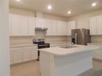 This Beautiful,4/3 single-story home features a covered patio perfect for entertaining. The split-bedroom layout showcases three secondary bedrooms,sizeable closets,two secondary baths,and a dedicated laundry room near the front of the home. The open floorplan offers a welcoming great room with volume ceilings. The modern design style white cabinets and upgraded kitchen tile flooring. The kitchen boasts 36-in. upper cabinets,stainless steel appliances,Kohler® stainless steel sink,and a chrome Moen® faucet and extractor range hood. Situated at the back of the home for added privacy,the primary bedroom showcases a spacious bath,a walk-in shower with tile surround,and dual-sink vanity. MLS# O6334911