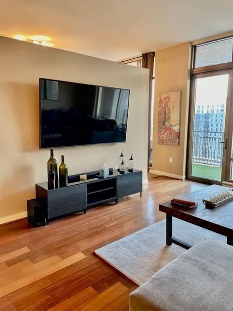 City Living at its Best!1 Bedroom 1 Bath,Open Concept with Unobstructed Panoramic Views of Downtown Atlanta. Entry way Opens to a Chef's Kitchen With Stainless Steel Appliances and Backsplash. Breakfast Bar overlooks Living and Dining area,and Large Balcony! Great for Entertaining. Hardwood Flooring in the Living Area,Carpet in the Bedroom,and Tile in the Bathroom. Oversized Bedroom with Floor to Ceiling Windows Facing the Skyline of Atlanta. Beautiful Bath area with Large Custom Closet. 1 Garage Parking Space. Available for Move in September 8,2025. Resort Style Amenities include 24/7 Concierge,Fitness Center,Covered Grilling Area w/Fireplace,Club Room,Heated Salt H20 Pool,and Gated Secure Parking Garage. Walking distance to the Fox Theatre,GA Tech,Ponce City Market and Piedmont Park.