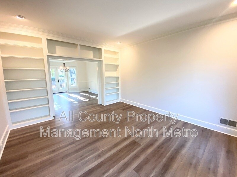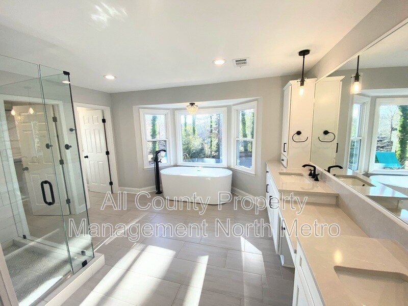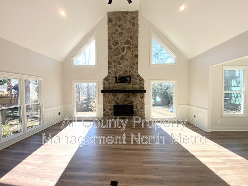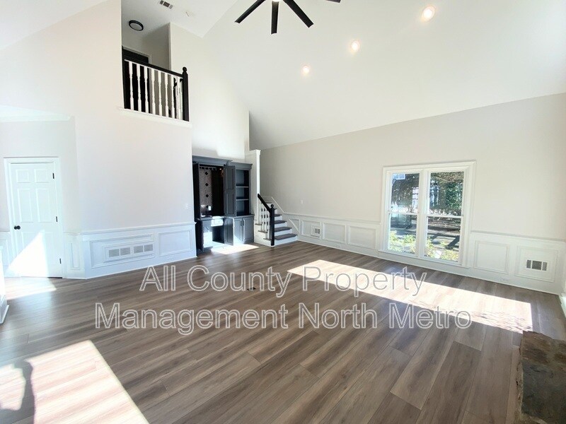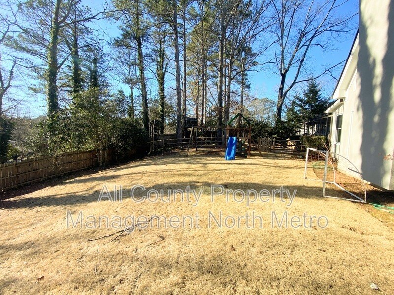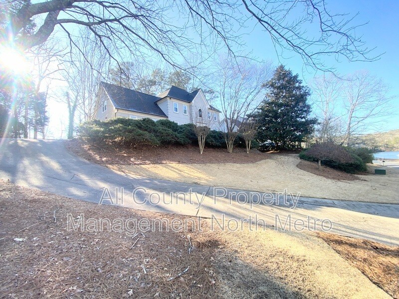 Located in the Horseshoe Bend community, this five-bedroom, five-bathroom home sits on an elevated lot with views of Willow Lake from the primary bedroom and main-level office. The main floor features a two-story foyer, a vaulted great room, and a large dining room. The kitchen includes updated appliances, granite countertops, and a large center island, opening into a sunroom and eat-in area. The primary suite features a bathroom with heated floors and a built-in speaker light fixture over the shower. The finished daylight terrace level includes a theater room with a projector screen, a full bathroom, and two recreation rooms. The exterior includes a private, partially wooded backyard with a deck and porch swing. The property is equipped with permanent exterior Ring cameras and two automatic day/night light switches. The neighborhood is patrolled daily by security and features two lakes with docks, trails, an open field, and playgrounds. The school bus stop is located directly in front of the house, and a neighborhood cut-through allows for a 5–7 minute trip to the middle school. (Please note that access to many community amenities requires a membership to the Horseshoe Bend Country Club.) Pets are welcomed, but residents should note that they are restricted from the grass area on the left side of the backyard. Locally & professionally managed by All County Property Management North Metro, which offers a streamlined leasing process with self-guided tours available.
