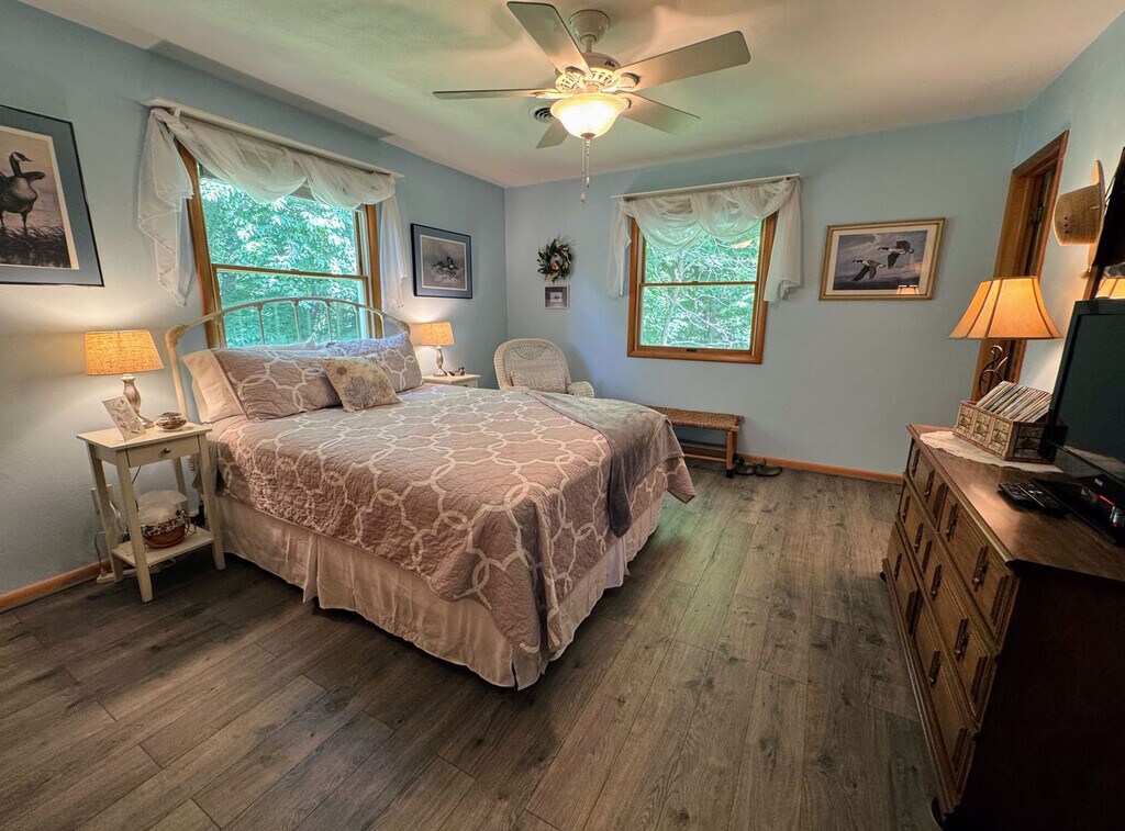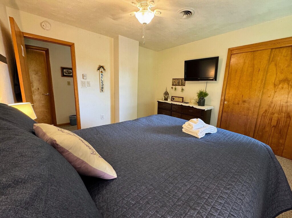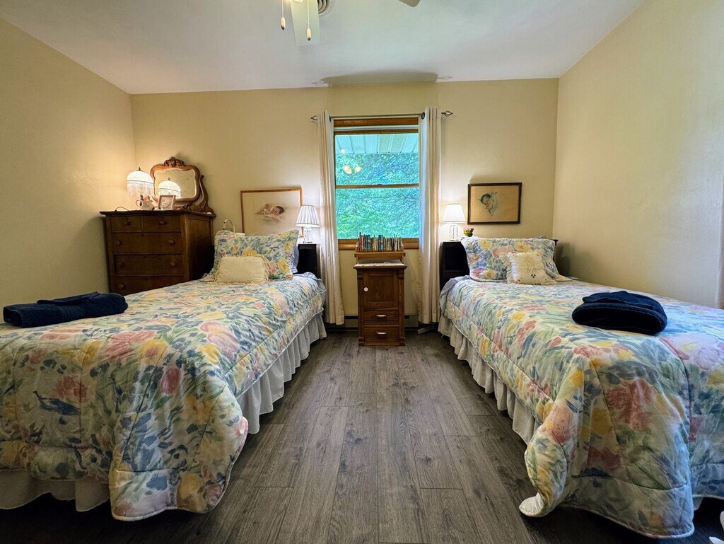 Feel at home in this cozy home situated in a peaceful rural setting. All bedrooms are located on the second floor. This home offers a family room, dining room, living room, and fully equipped kitchen. Enjoy the gas grill, fire pit, garden area, swing set, outdoor swings, and corn hole set. For families with young children, a children's pack and play and high chair are provided. The owner lives in an adjoining apartment, but there are no shared spaces. Washer and dryer are available upon request. Surrounded by beautiful gardens filled with wildlife and nature, this home is close to lakes like Diamond Lake, historic sites such as the Bonine House Underground Railroad Station within 3 miles, and Amish country. The thermostat controls both the apartment and the guest rooms; the owner is available to adjust the temperature if needed. [SI]