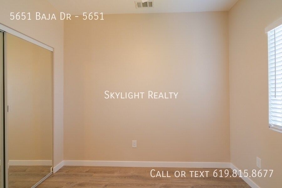 AVAILABLE FOR IMMEDIATE MOVE IN! 5 Bed 2 Bath Home at 5651 Baja Dr – Walking Distance to SDSU! Available for a short term lease - now through July 31, 2026. **Option to rent by the bedroom also available! $1,100/month + $135/month for utilities. Book a Tour: We'd love to show you around! Call us at , or copy and paste this link to schedule a tour: Check out the full Virtual Tour: Property Features: -5 beds / 2 baths -BRAND NEW BUILD! -Air conditioning -In unit Washer/Dryer -Dishwasher -Shared yard -Street parking only -No pets -All utilities separate Lease Terms: -Lease term negotiable - available now through July 31, 2026 -No pets allowed. Service animals and ESA's exempt -$43.60/month per household fee for trash. -All utilities separate from rent. Tenants set up and pay for their own electricity and wifi. $75/month per tenant flat fee for water, sewer, gas & technology fee. APPLICATION PROCESS: 1. All tenants (and co-signers, if applicable) must complete an application. 2. Once approved, a $1,000 initial holding deposit is due to reserve the unit and begin lease preparation. 3. The remainder of the security deposit must be submitted within 1 week or by the due date listed on the lease agreement. 4. Applicants must show a minimum monthly income of 2.5x the rent and a credit score of 650 or higher. Guarantors/co-signers are accepted. Follow Us: Stay updated with more listings by following us on Instagram: @Aztec.Living Listed by Skylight Realty DRE# 02222135